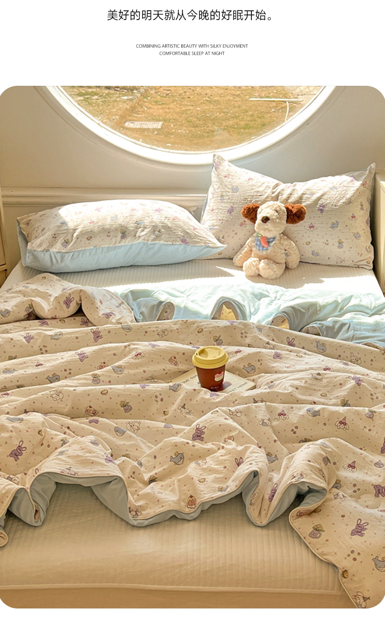 (总)苏羿家纺 2026春夏新款亲肤水洗棉印花夏被空调被夏凉被被子被芯,动物宴会,格子小兔,萌趣小狗,仟陌樱桃,童年木马,小熊点点,樱桃小熊,芝士星星仔