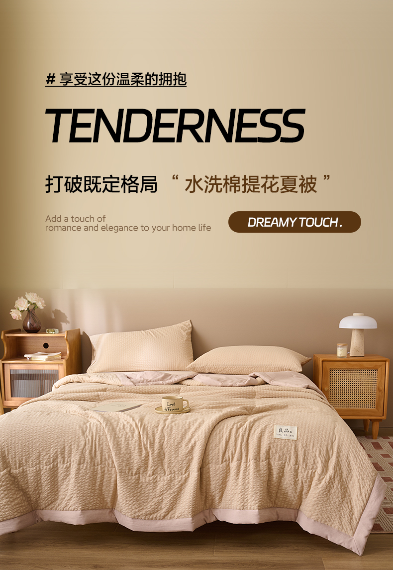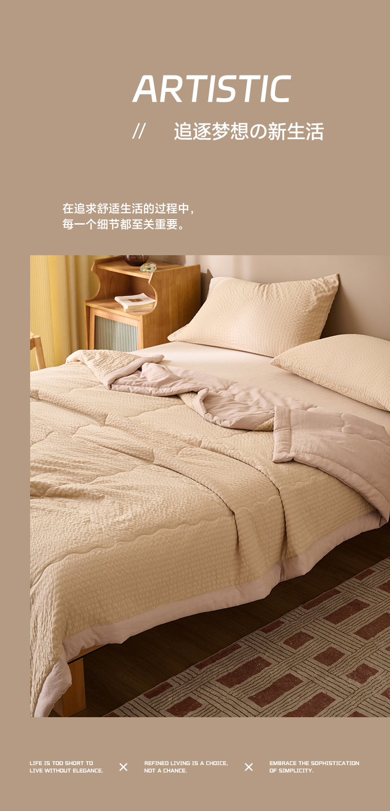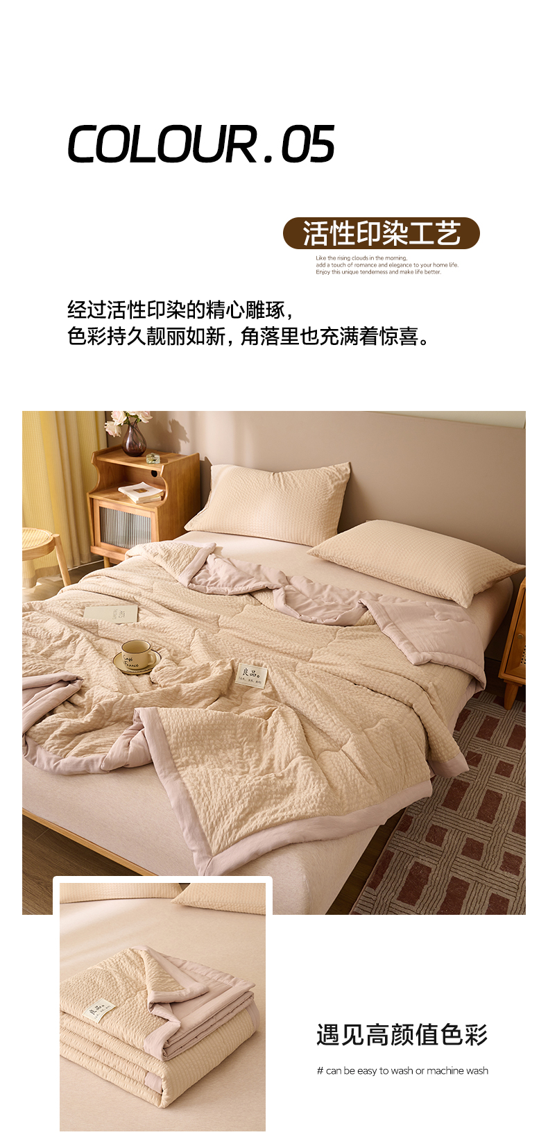 畅销被业 2026新款水洗棉泡泡格夏被 泡泡格-浅驼