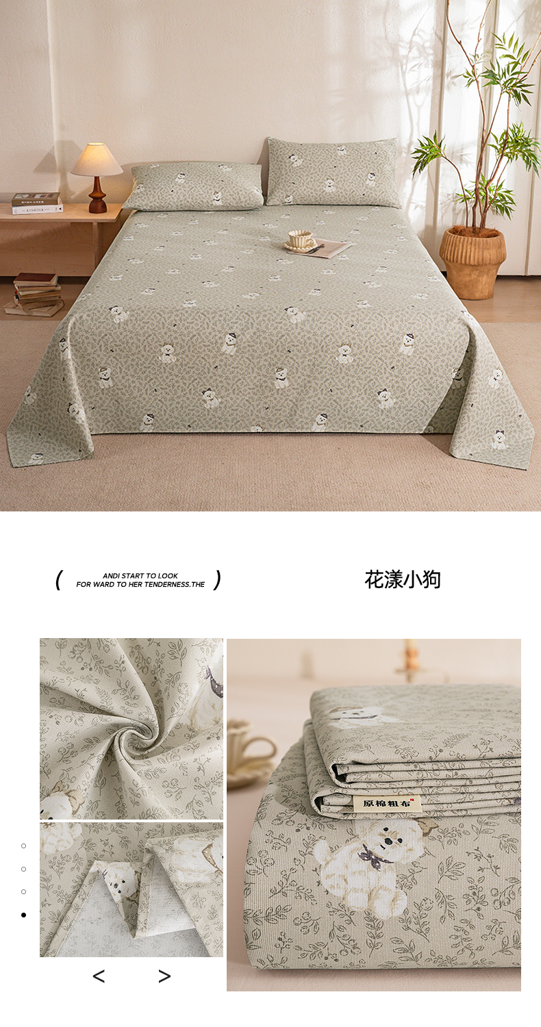 当前位置: 91家纺网 > 商品网购 > 床品套件 > 三件套 > 博弈家纺 2026新款亲肤舒适原棉老粗布床单凉席三件套系列 花漾小狗
