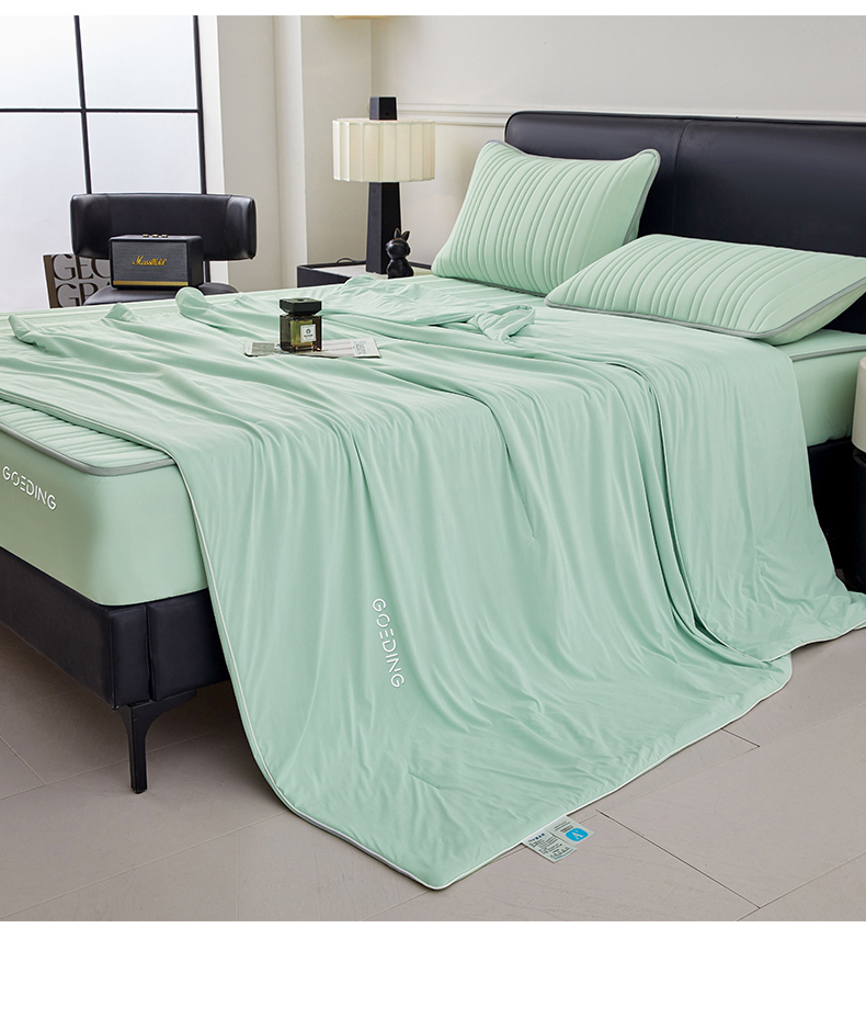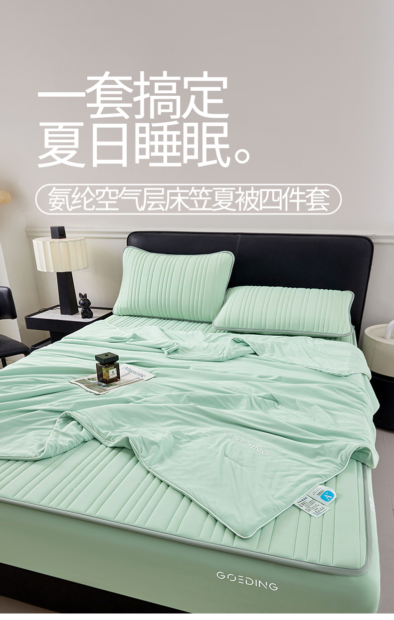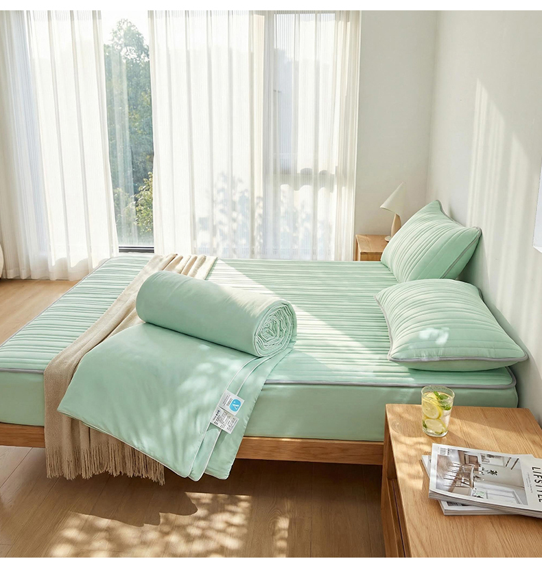 • 91家纺网 家纺一手货源 找家纺 雯豆家纺 2026春夏新款氨纶凉感丝床笠夏被四件套0.28凉感值空调被子被芯 知夏-青草绿