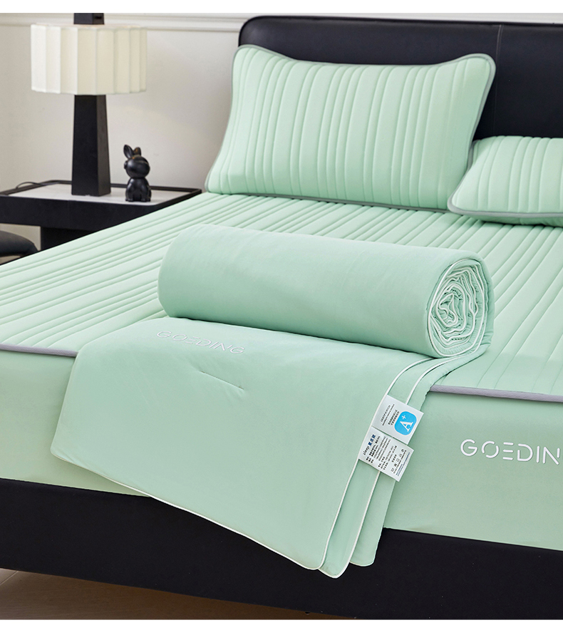 • 91家纺网 家纺一手货源 找家纺 雯豆家纺 2026春夏新款氨纶凉感丝床笠夏被四件套0.28凉感值空调被子被芯 知夏-青草绿 91家纺网 家纺一手货源 找家纺 雯豆家纺 2026春夏新款氨纶凉感丝床笠夏被四件套0.28凉感值空调被子被芯 知夏-青草绿