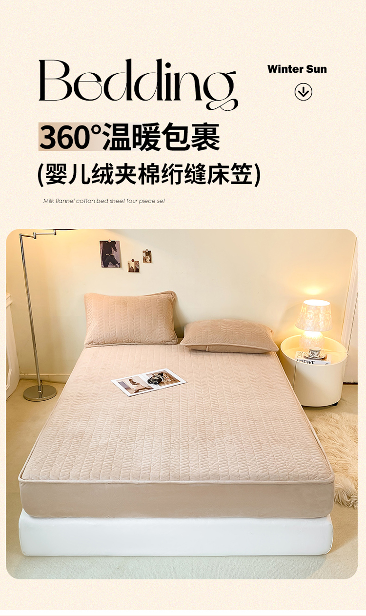 (总)延遥2026新款A类舒适床笠保暖婴儿绒宝宝绒牛奶绒绗缝夹棉单件床笠,奶咖,海棠粉,雾蓝,黛粉,丁香紫,烟灰