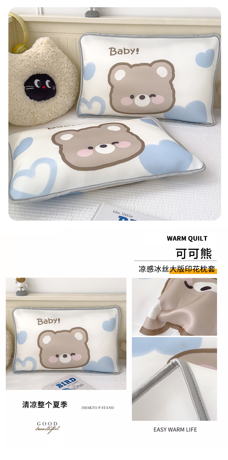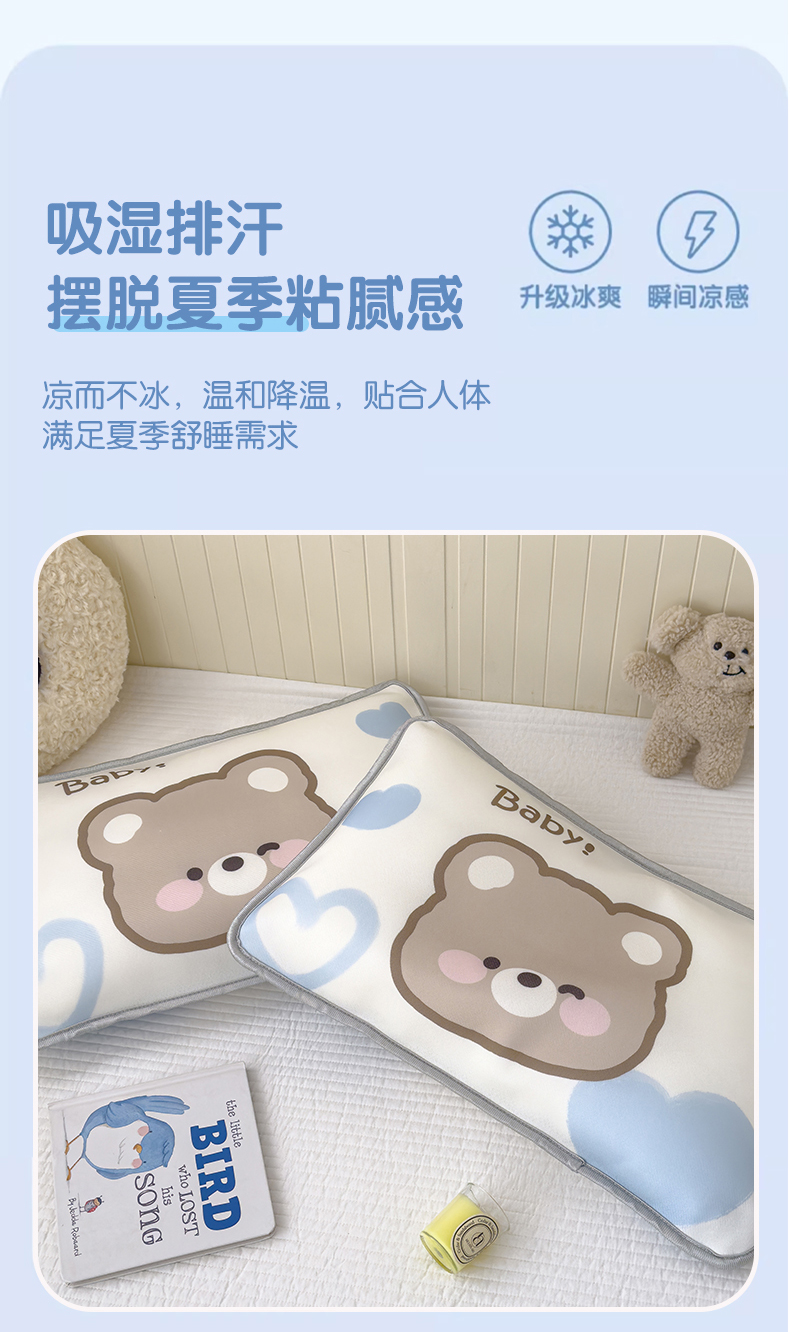 • 91家纺网 家纺一手货源 找家纺 丽美人家纺 2026新款柔软亲肤儿童冰丝枕套 可可熊