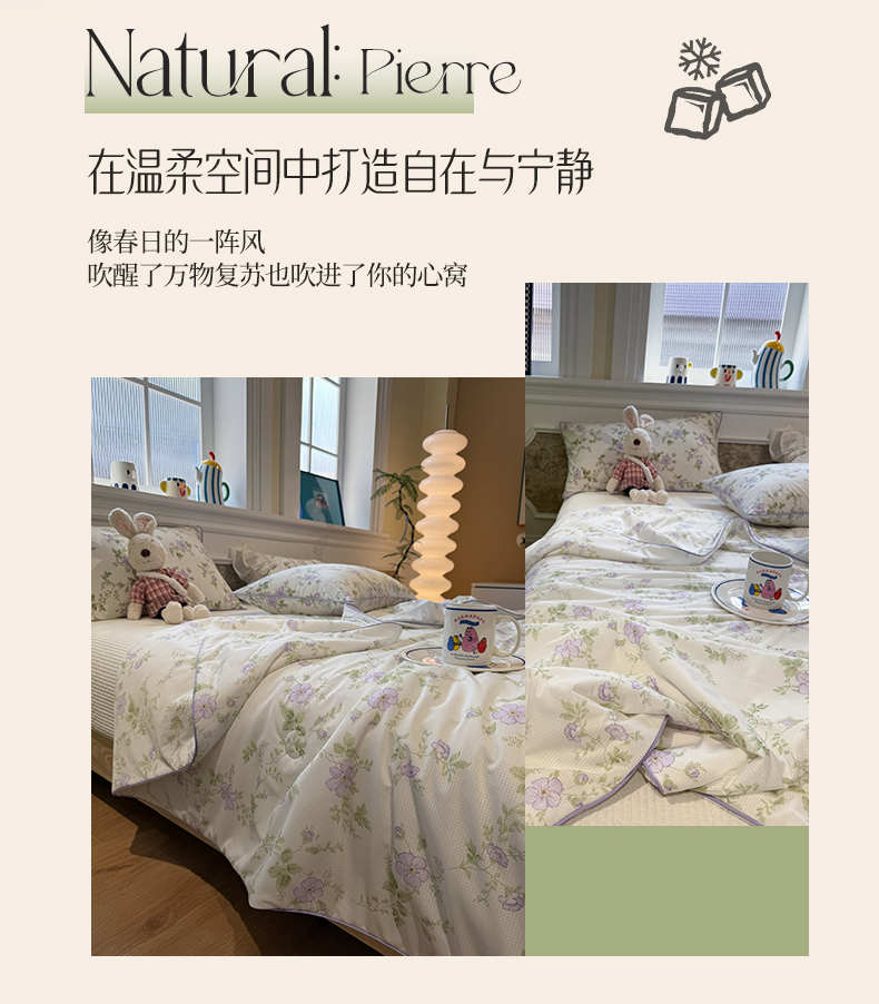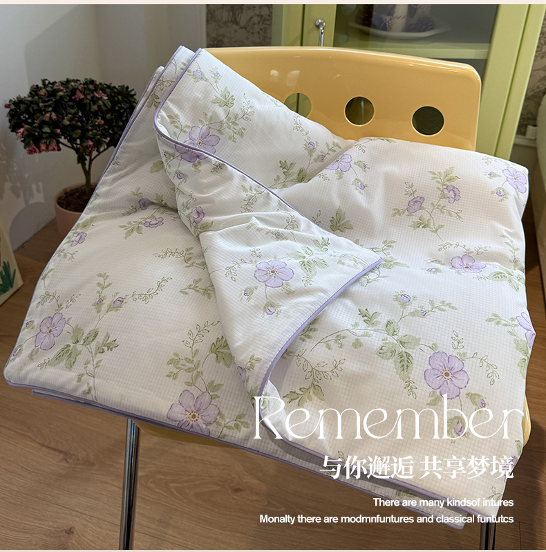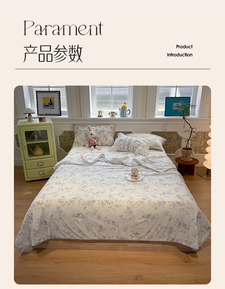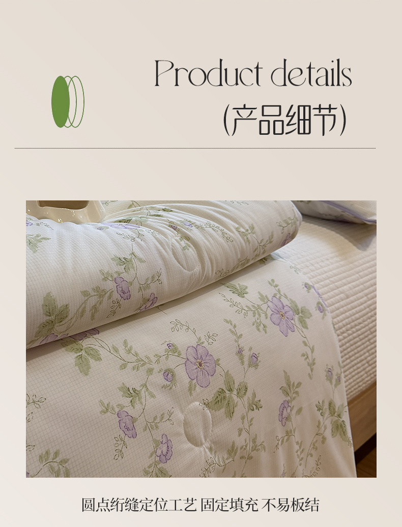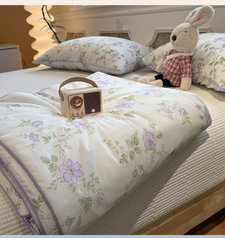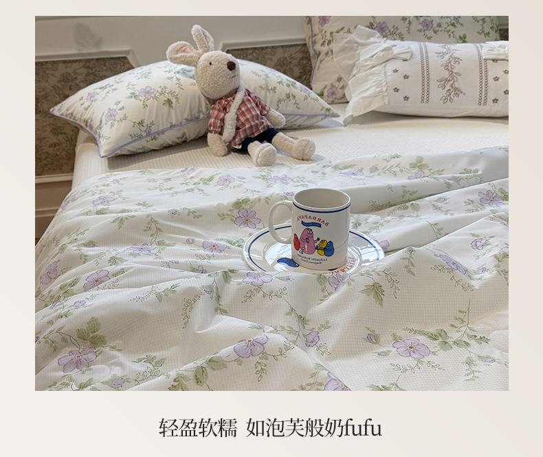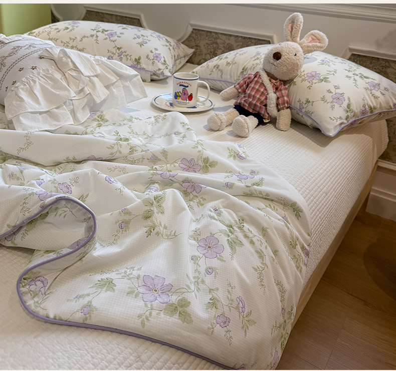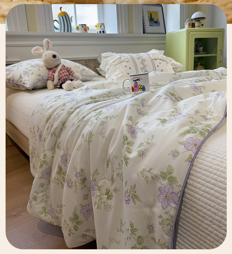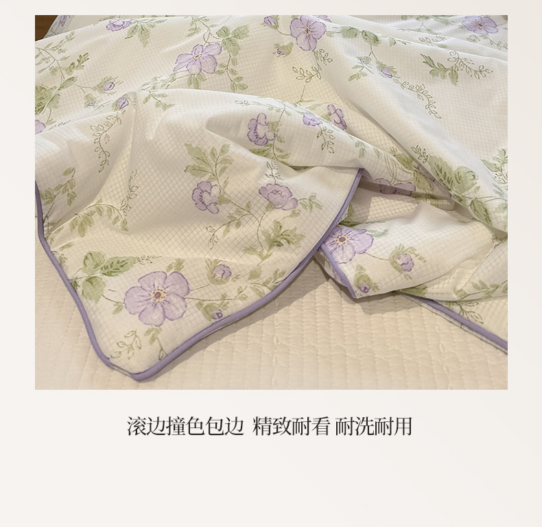 商品名称:羚羊语家纺 2026新款凉感丝提花夏凉被(含氨)印花冰淇淋空调被针织棉被夏被冰丝云母凉感西瓜被子被芯 紫藤初绽