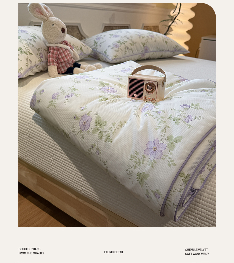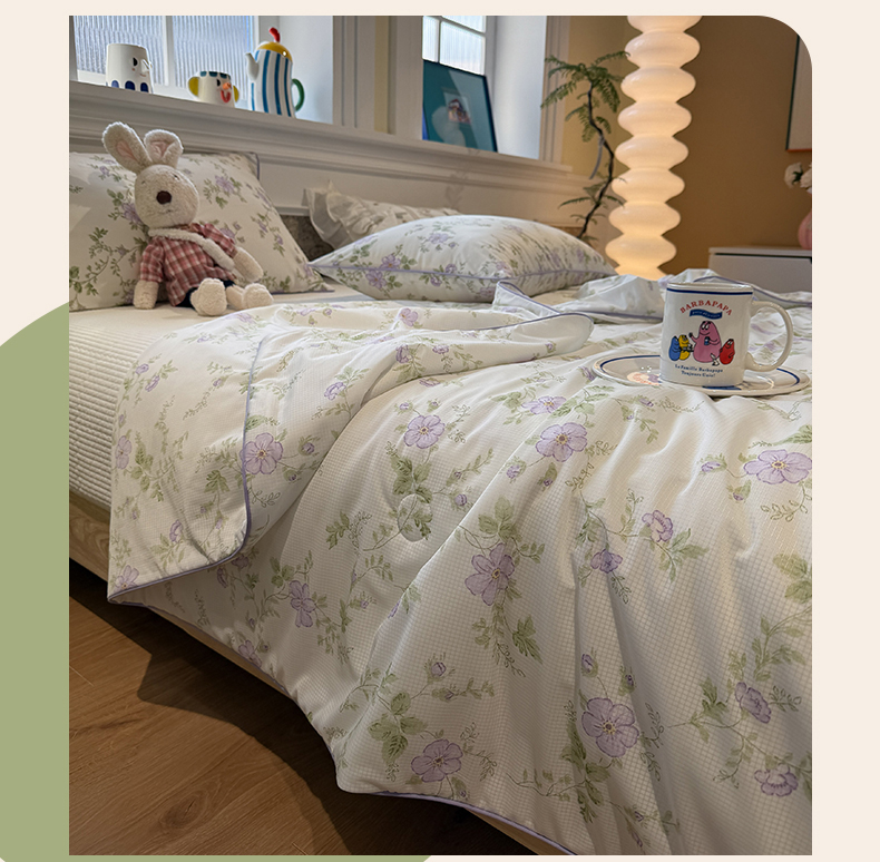 被子 > 夏被 > 羚羊语家纺 2026新款凉感丝提花夏凉被(含氨)印花冰淇淋空调被针织棉被夏被冰丝云母凉感西瓜被子被芯 紫藤初绽