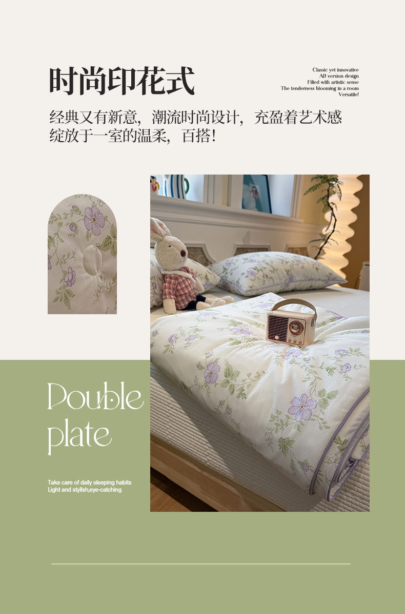 (总)羚羊语家纺 2026新款全棉毛球款四件套40支纯棉轻奢13372小清新喷气印花四件套被套床单床笠三件套,莫松染Pro,浮世绘,浣纱记,暮山紫,砚余墨,伊旬粉,月光纱,云边榻,知春绿