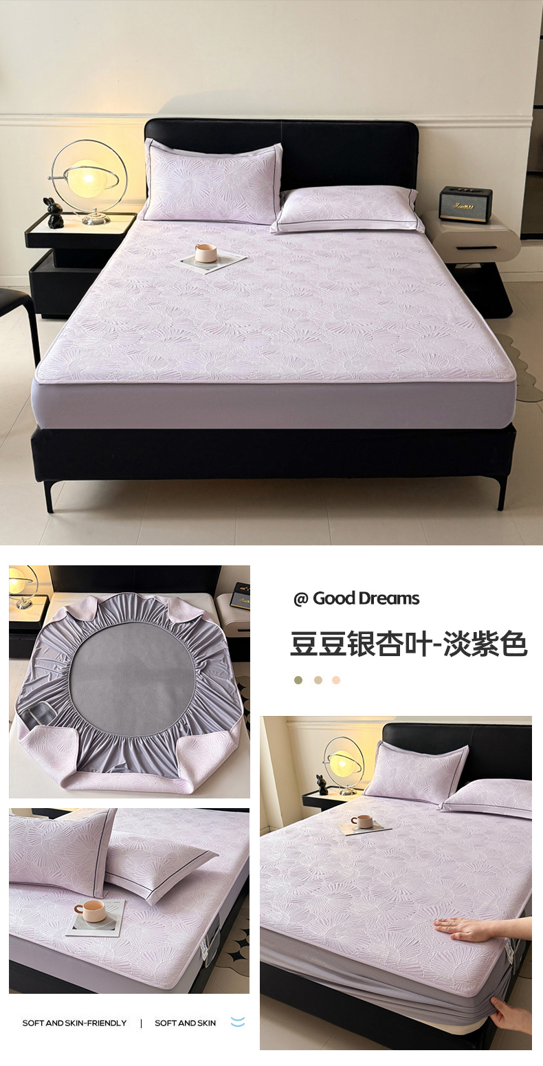 商品名称:牵梦萦家纺 2026新款立体浮雕压花工艺凉感豆豆凉席-床笠款 豆豆银杏叶-淡紫色