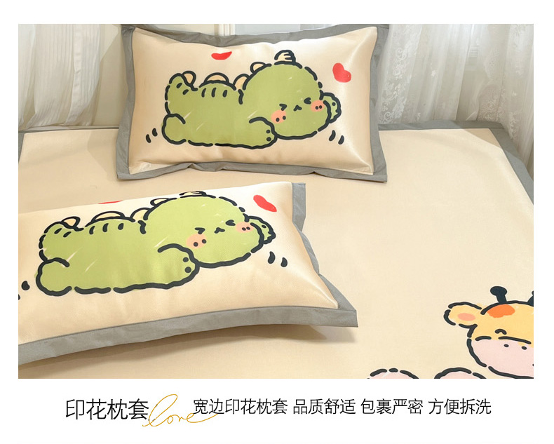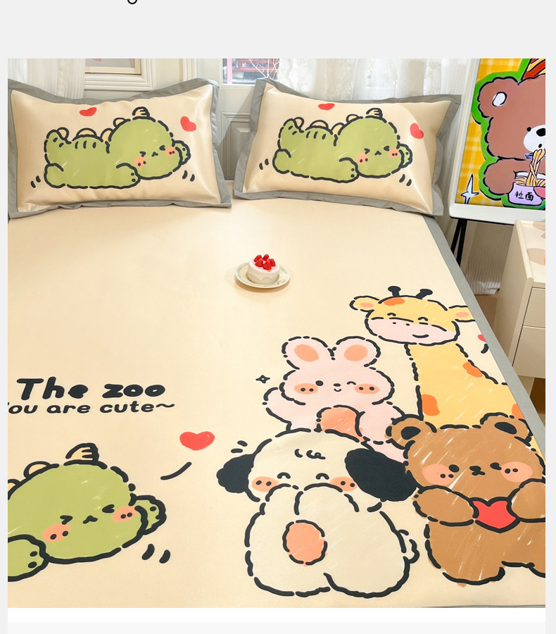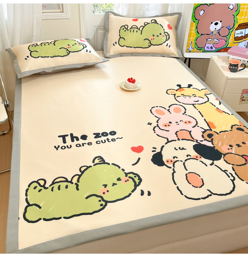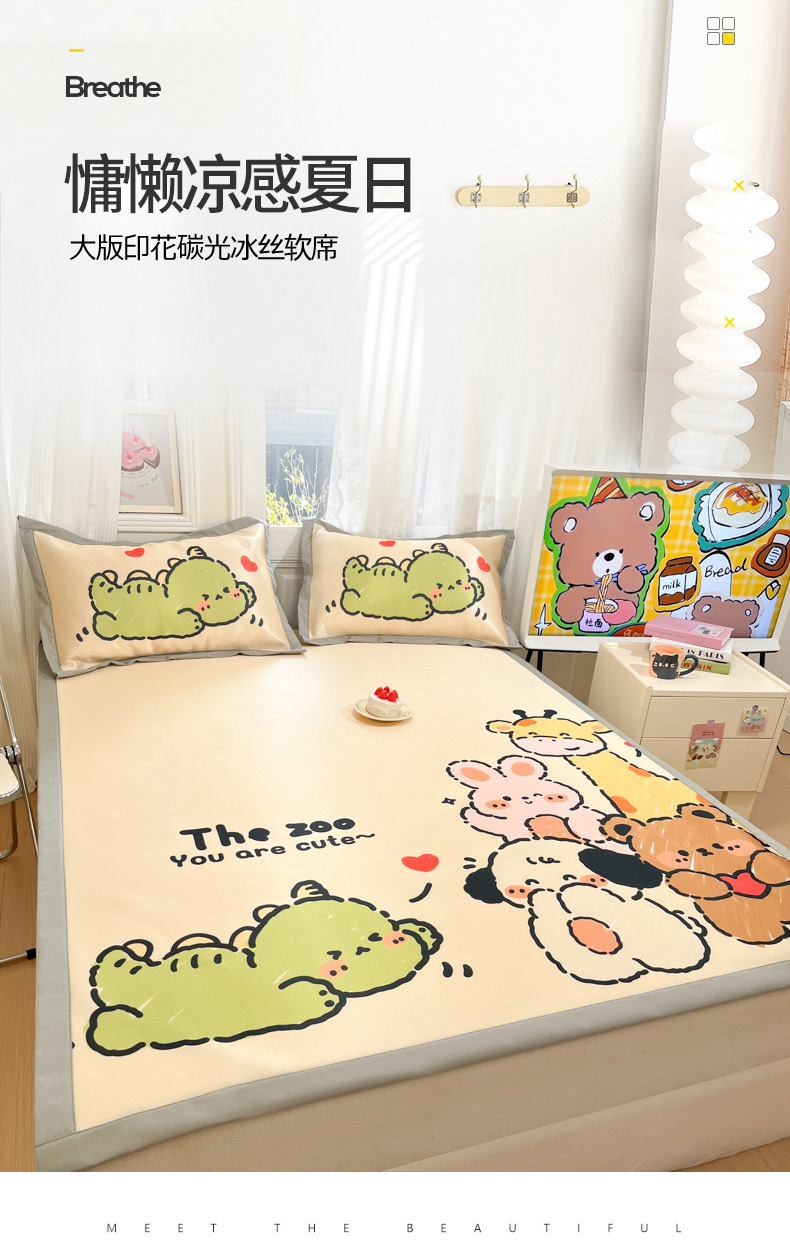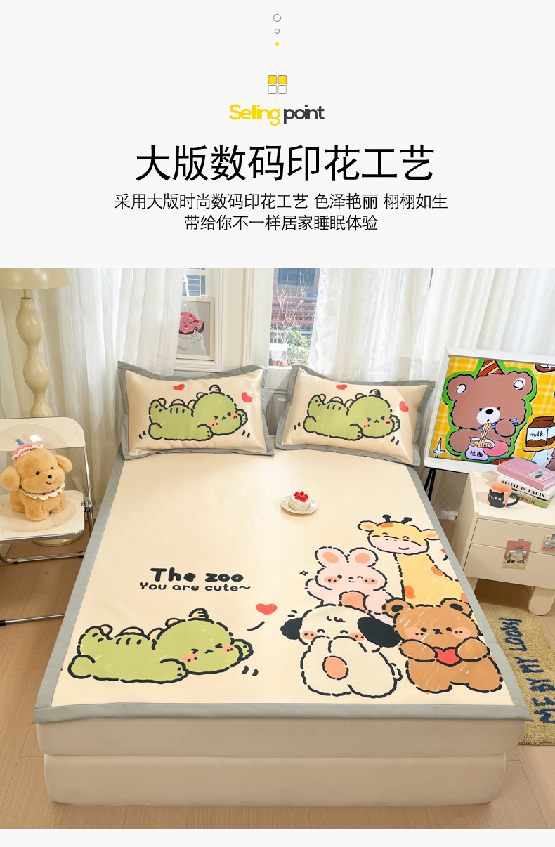柒月家居 2026新款大版印花碳光冰丝席床席款凉席 动物世界