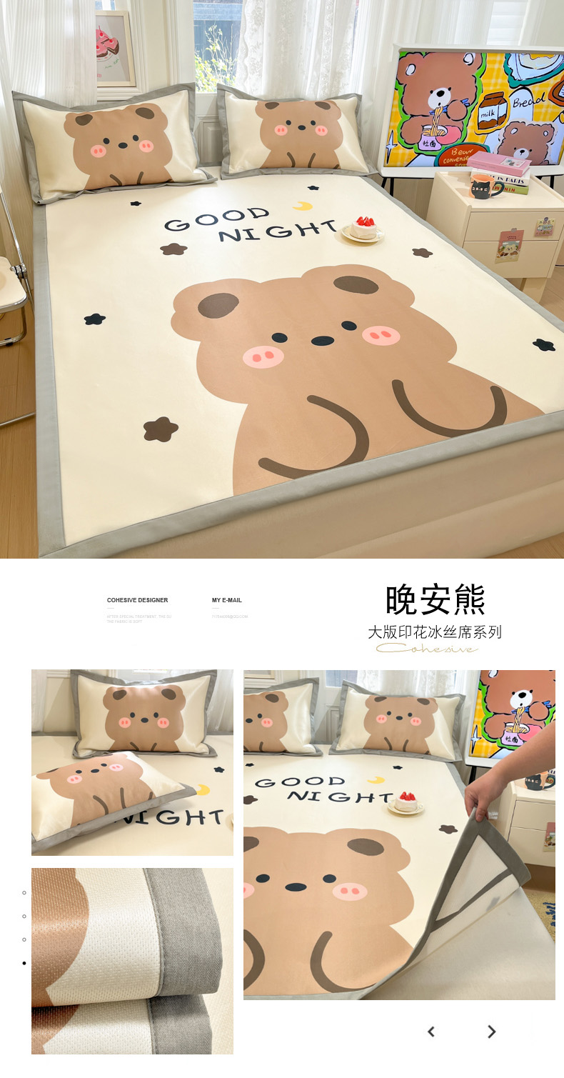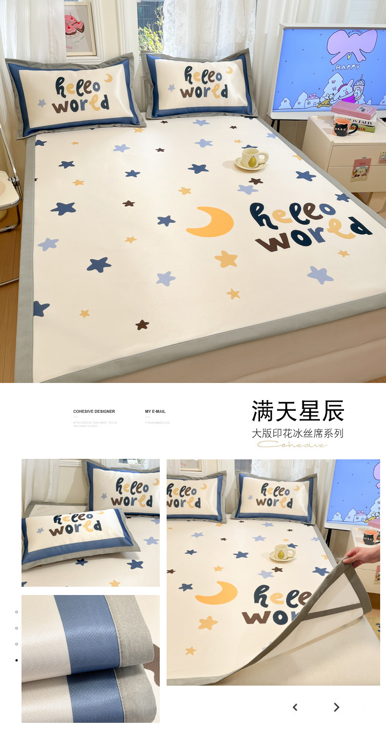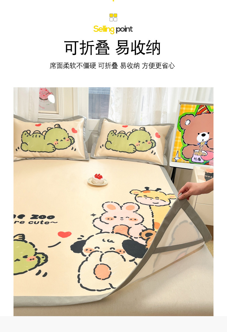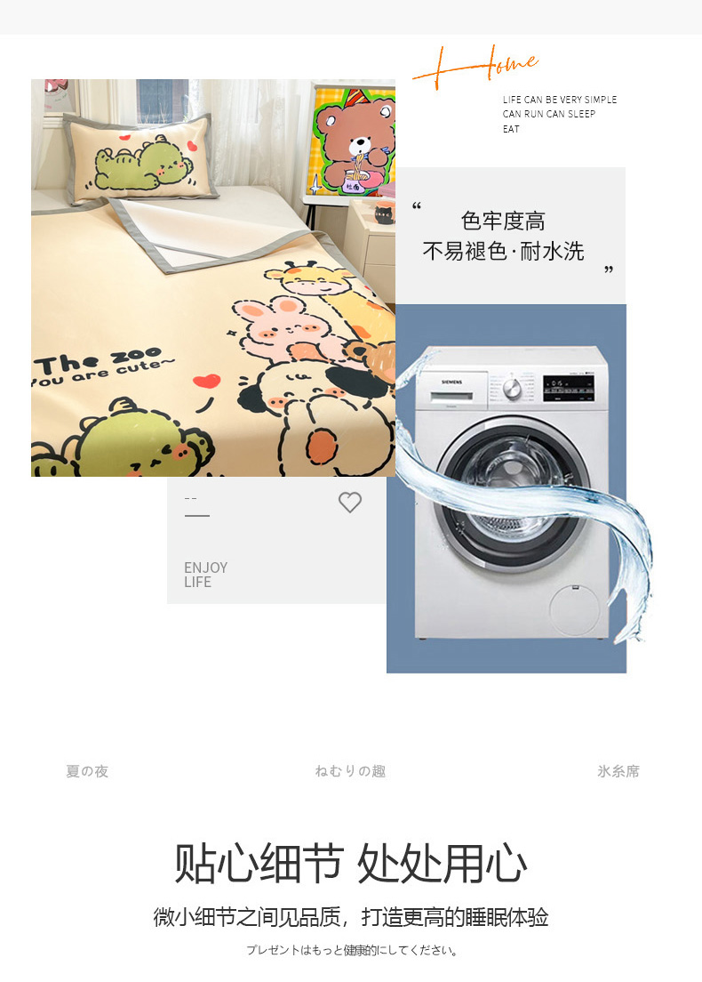 柒月家居 2026新款大版印花碳光冰丝席床席款凉席 动物世界