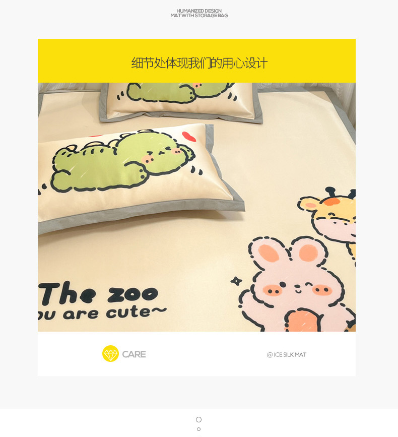 商品名称:柒月家居 2026新款大版印花碳光冰丝席床席款凉席 动物世界