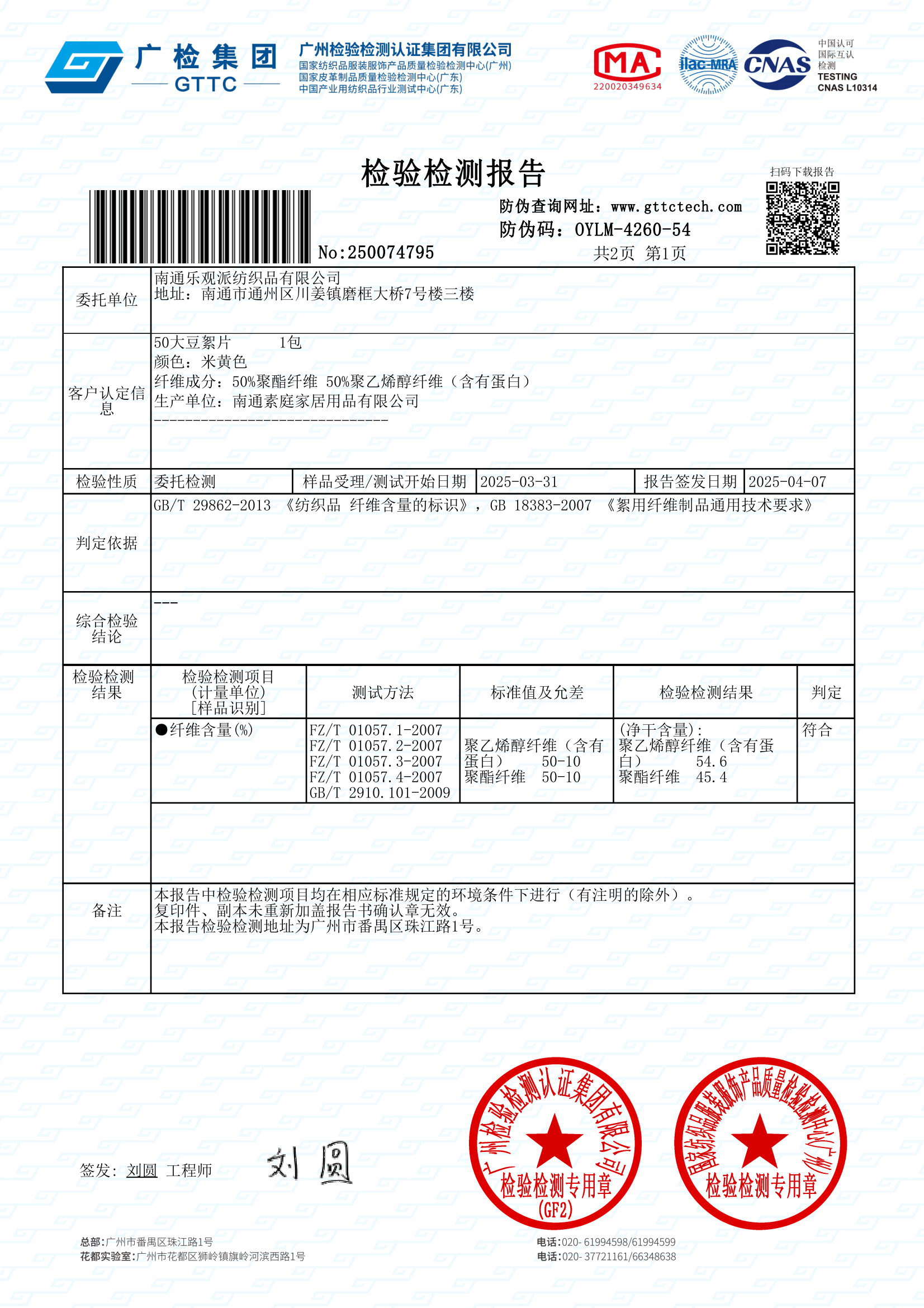 填充纤维种类: 大豆蛋白改性聚酯纤维
