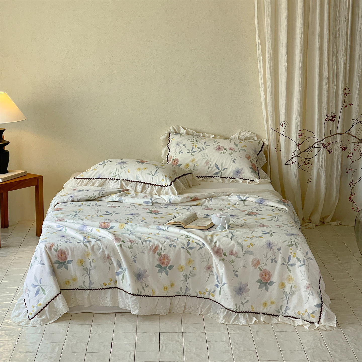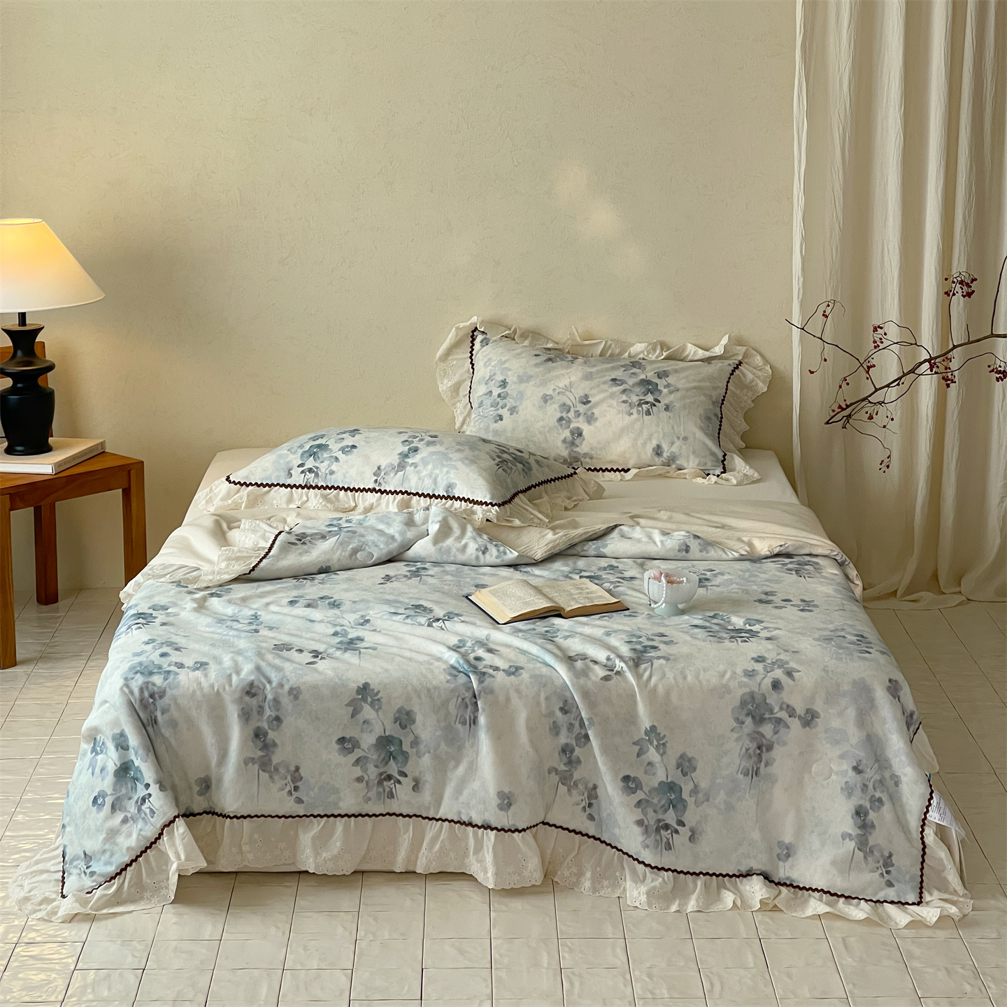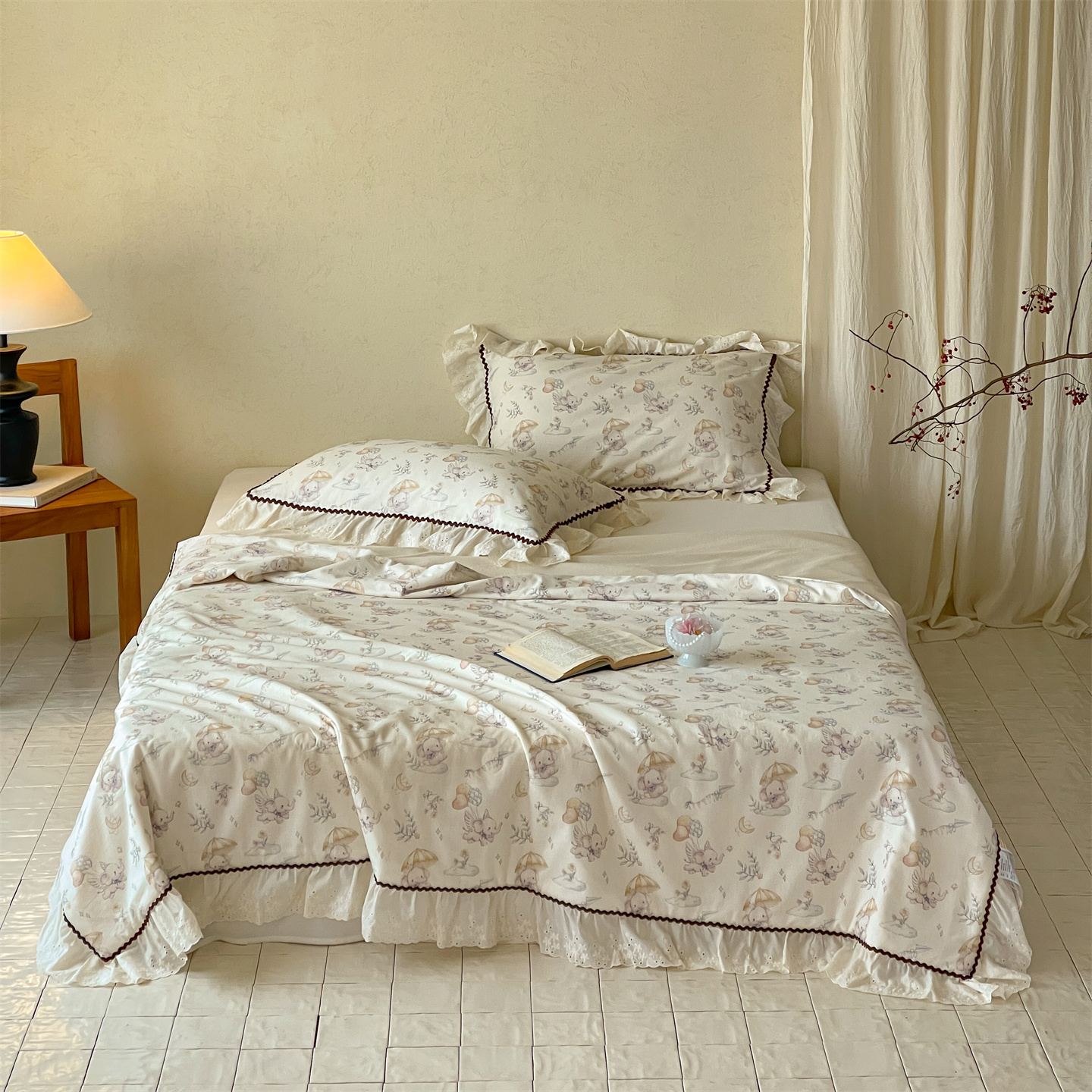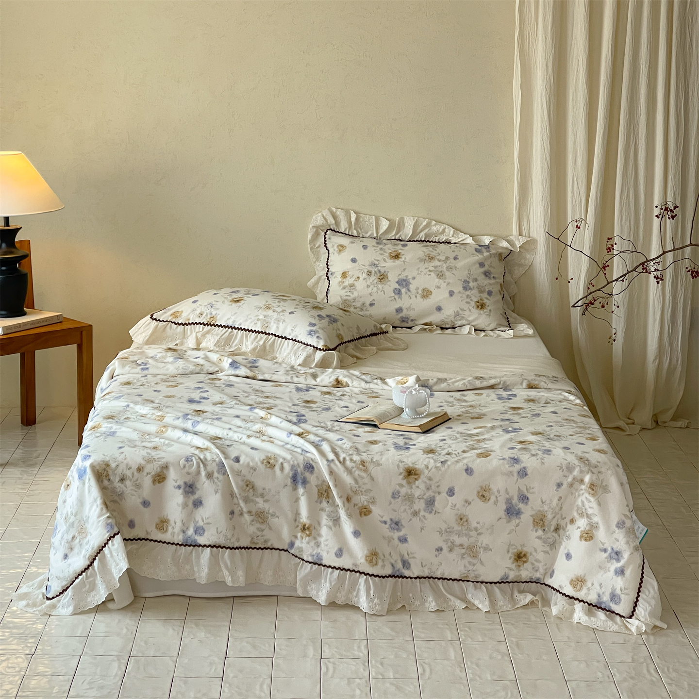 【山野计划】傲蕾 AL BEDDING水洗砂洗棉麻夏被春秋被四件套韩式花边大豆被子全棉夏凉被亚麻