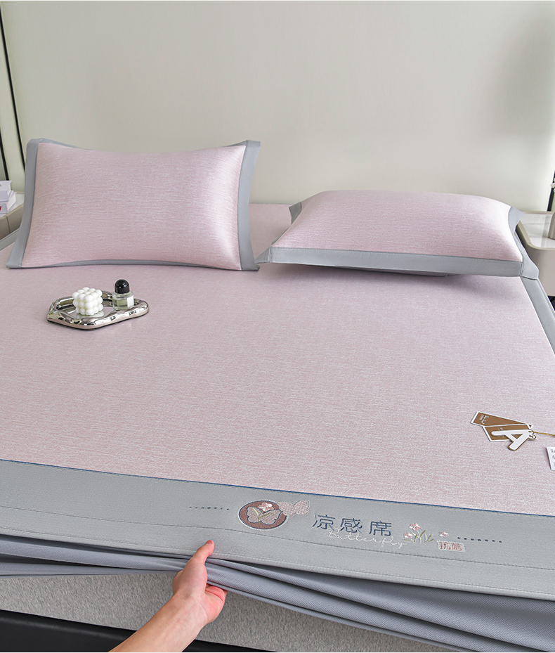 (总)2023新款超精密冰丝席-小斜纹系列-床笠款藤席凉席竹席,粉色,蓝色,绿色,银灰