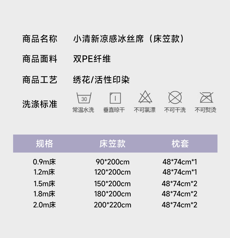 (总)小牛席业 2026新款小清新凉感冰丝席席子凉席-床笠款,粉色,灰色,蓝色,香槟