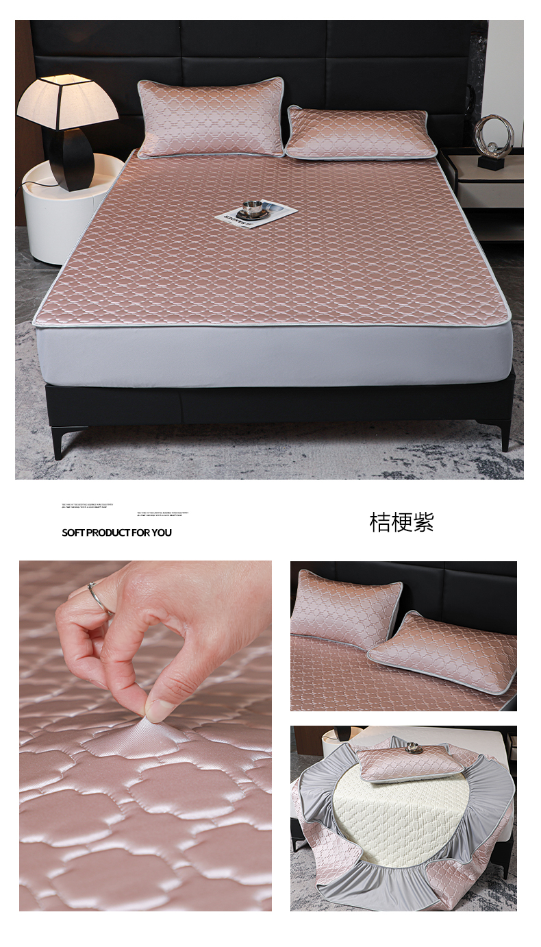 (总)多乐家纺 2025新款轻奢凉感锦氨丝光凉席夏被四件套,翡翠绿,冰川灰,焦糖玫瑰,丝绸紫,丝缎香槟