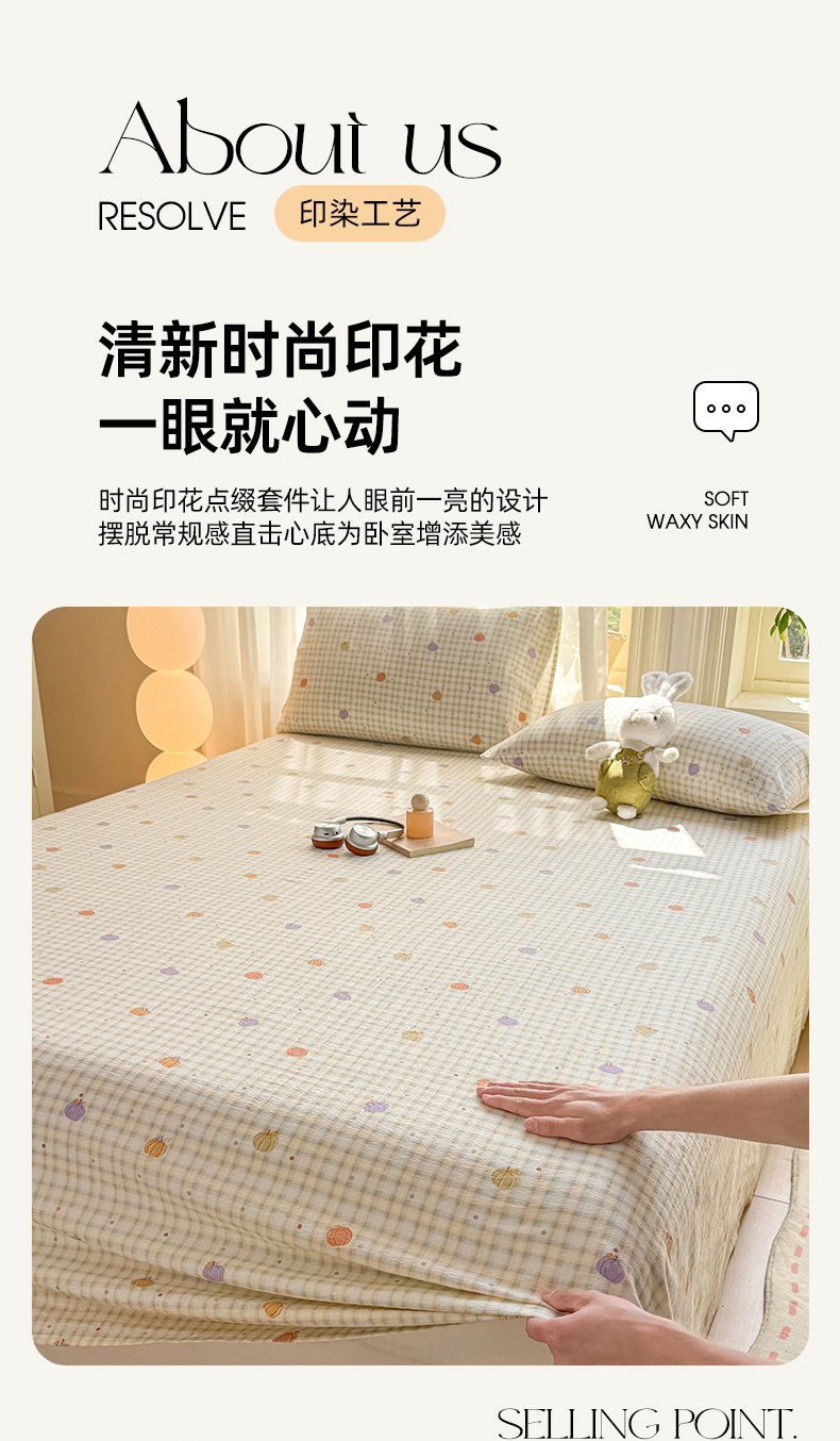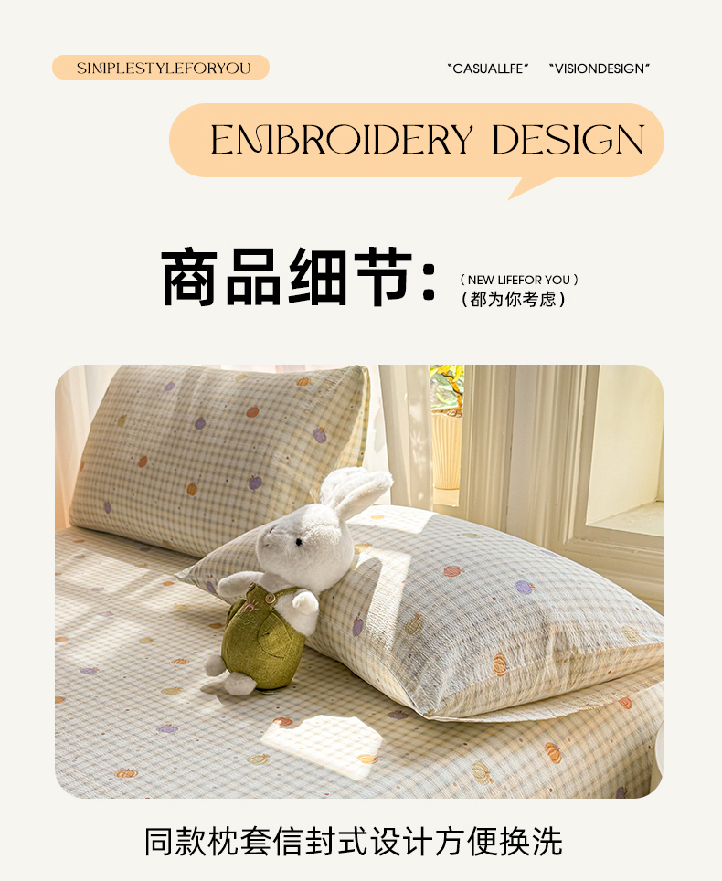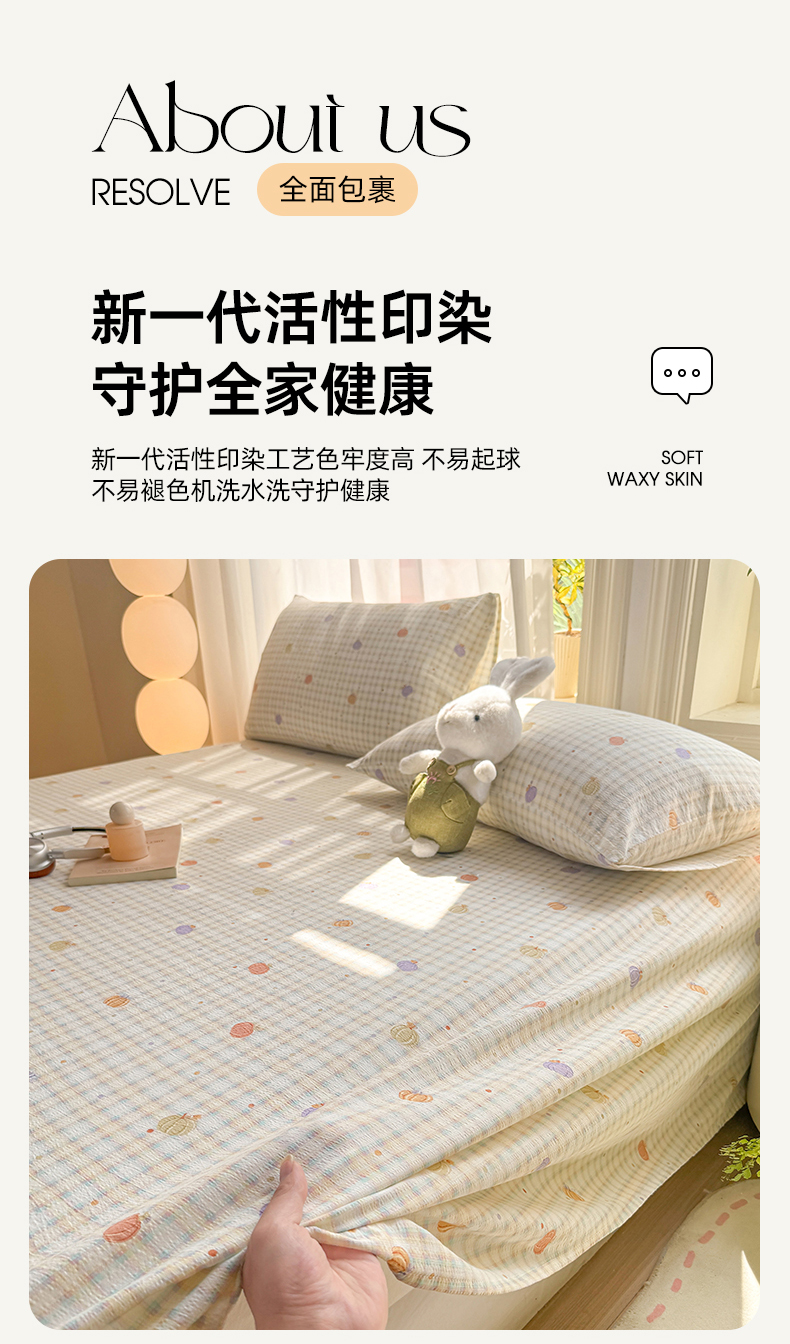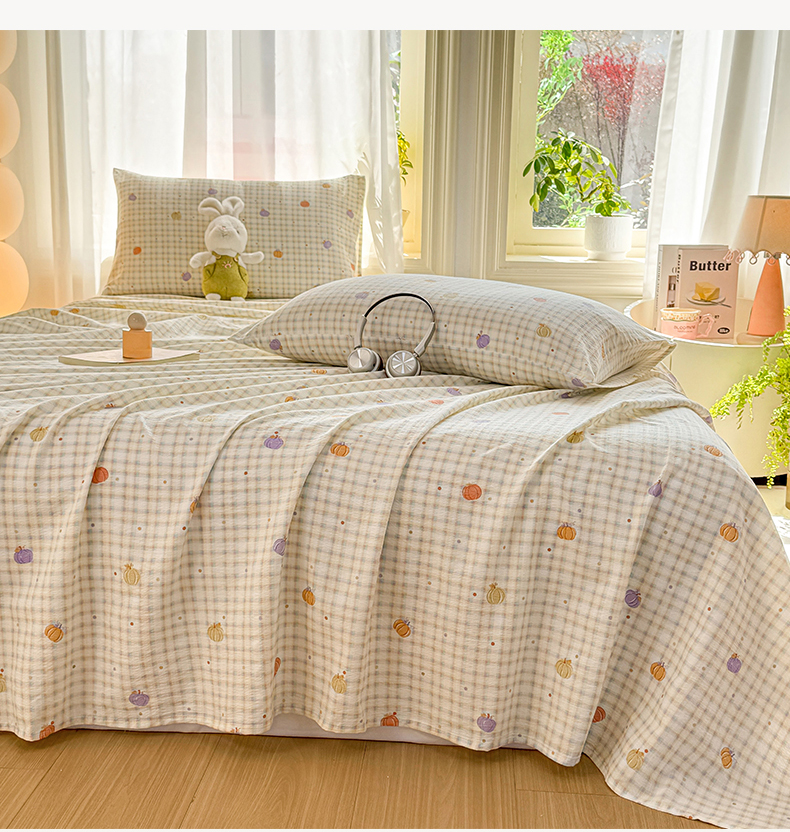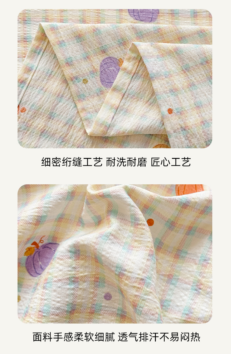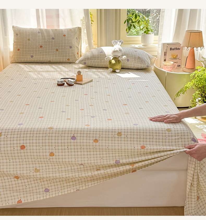 (总)丝芙妮家居 2026新款四季皱皱棉柔软透气不闷汗木棉床笠单件三件套-系列三,缤纷南瓜,草莓奶昔,春之约,格纹爱心,花清梦,花枝狗狗,假日小狗,莓果冰淇淋,泡芙蝴蝶结,浅川织格,素描花海,晚安甜心,星月点点