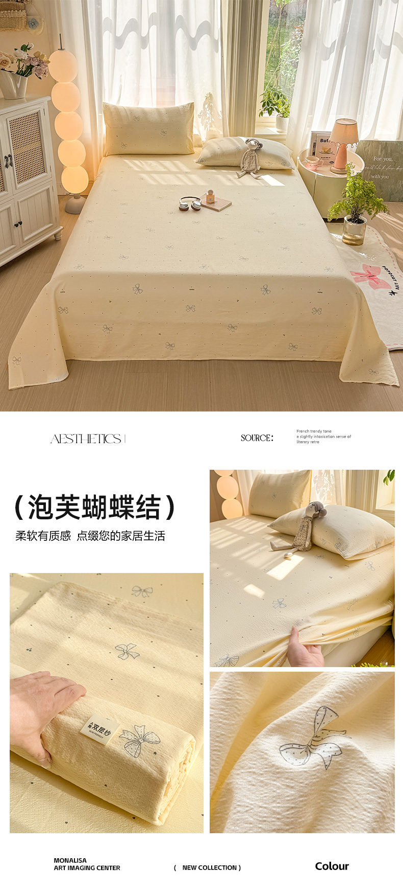 (总)丝芙妮家居 2026新款皱皱棉双层纱泡芙棉床单单床单