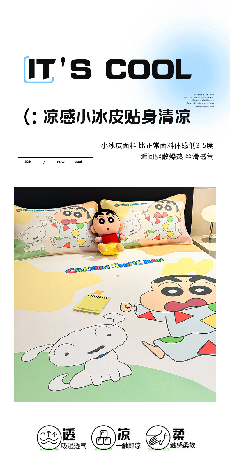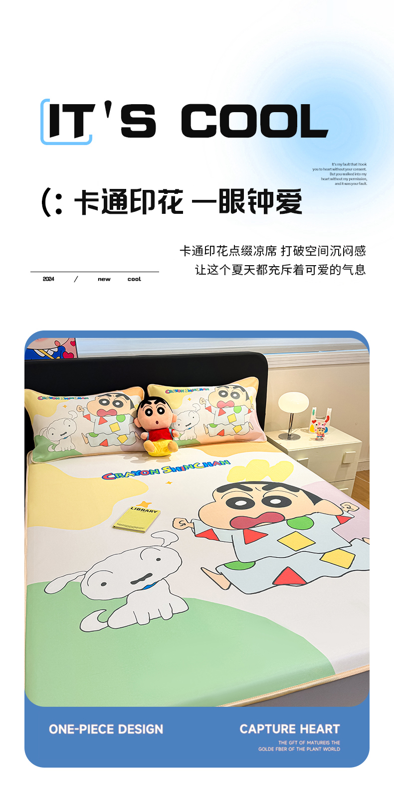 • 91家纺网 家纺一手货源 找家纺 博雅 2026蜡笔小新正版授权小冰皮大版印花凉席床笠款 大版-睡衣小新