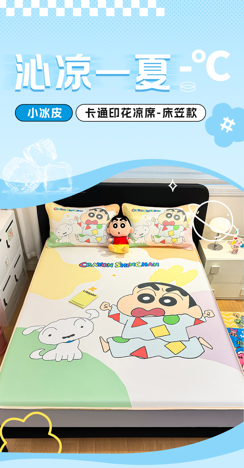 博雅 2026蜡笔小新正版授权小冰皮大版印花凉席床笠款 大版-睡衣小新