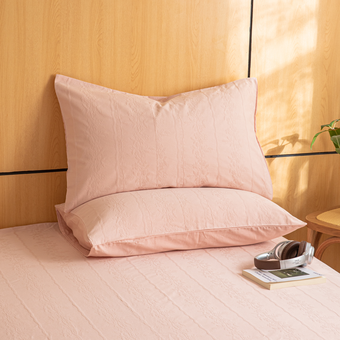 眠博士 2026新款60水洗立体提花枕套场景二 杏影-粉