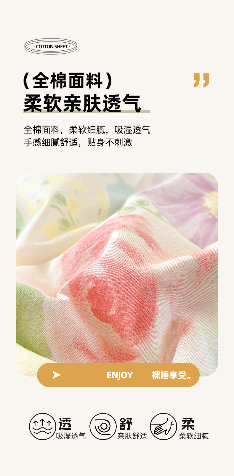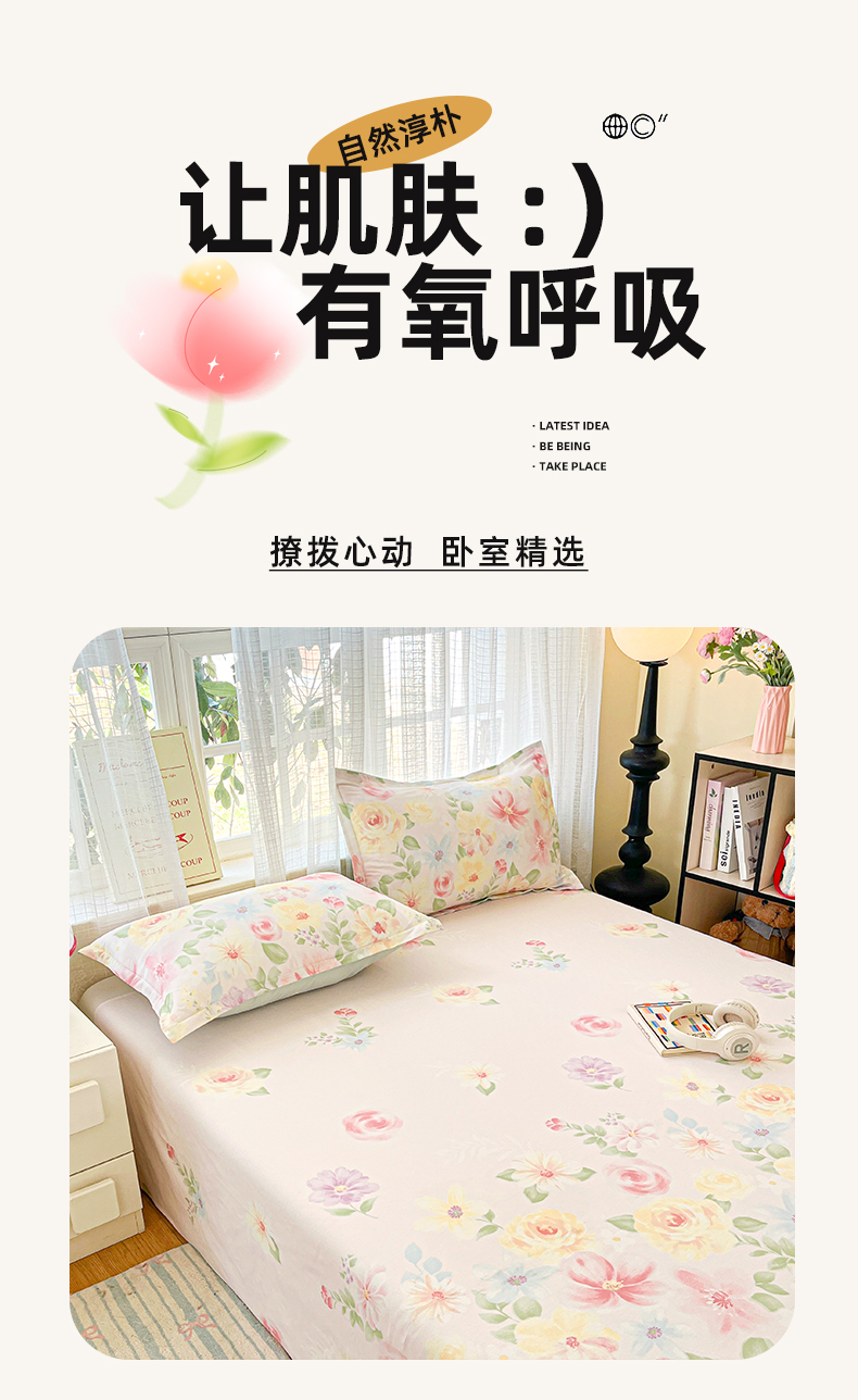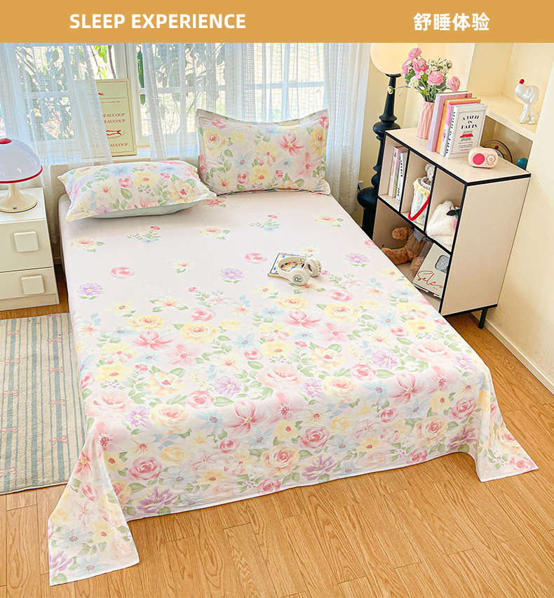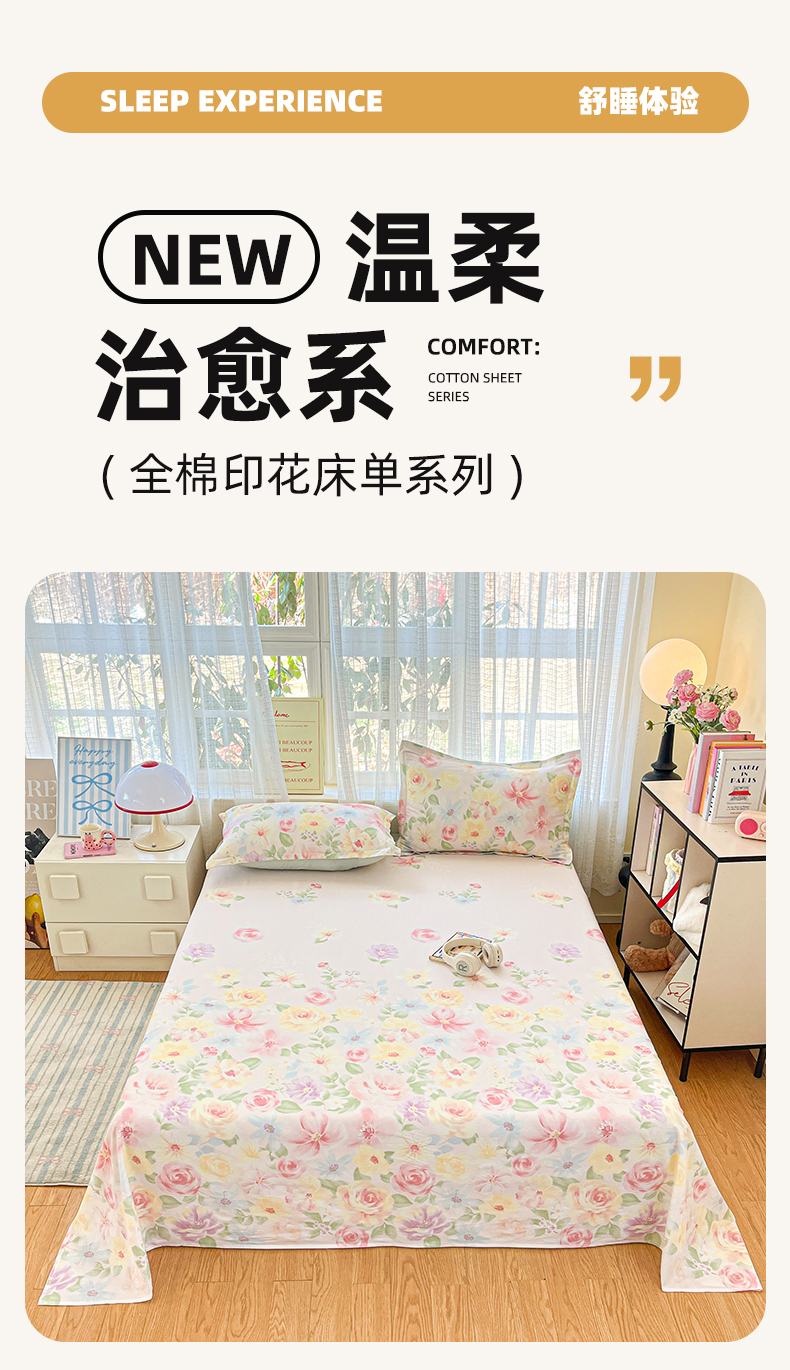 • 91家纺网 家纺一手货源 找家纺 好亿来家纺 2026新款全棉纯棉印花小清新床单单件床单单品单床单 花木佳期