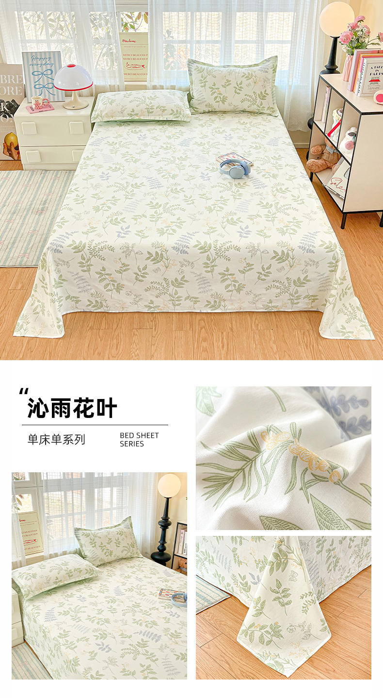 好亿来家纺 2026新款全棉纯棉印花小清新床单单件床单单品单床单 花木佳期
