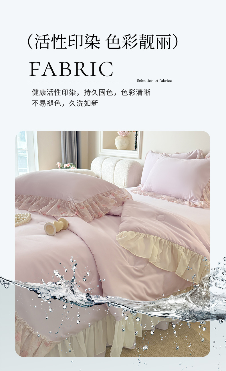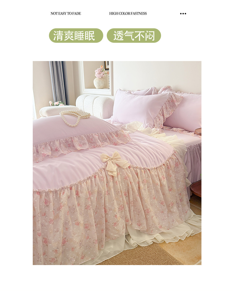 (总)富盛家纺 2026新款雪纺蕾丝刺绣法式床裙韩版夏凉被空调被夏被四件套,夏被四件套—浪漫主义(粉),夏被四件套—浪漫主义(米白),夏被四件套—浪漫主义(绿),夏被四件套—浪漫主义(紫),夏被四件套—浪漫主义(大红),夏被四件套—浪漫主义(黄),夏被四件套—浪漫主义(蓝),夏被四件套—浪漫主义(豆沙),组合图仅供展示不可下单