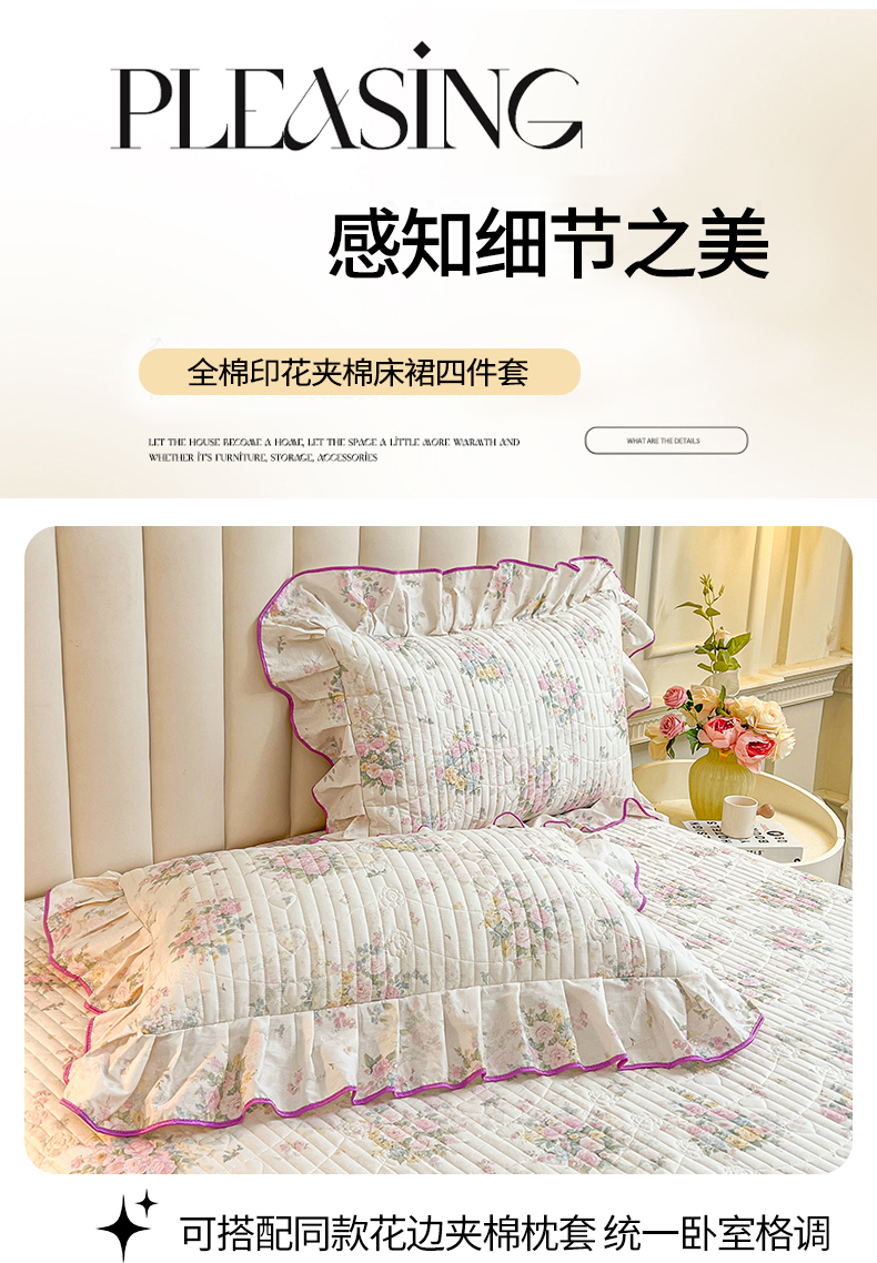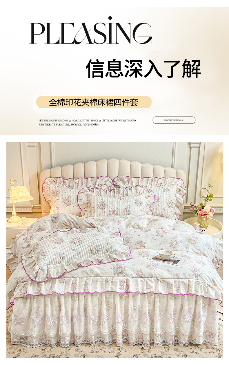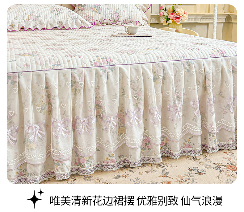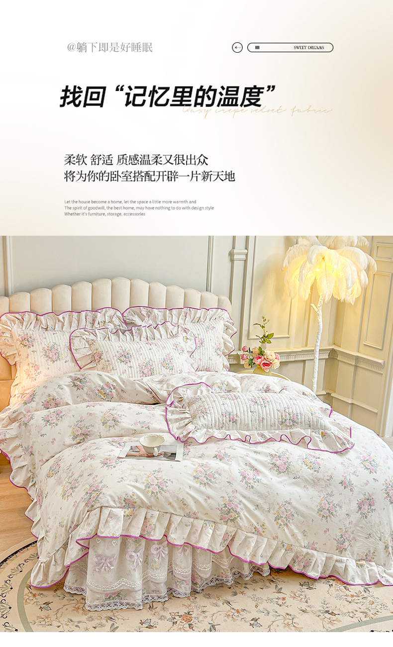 当前位置: 91家纺网 > 商品网购 > 床品套件 > 四件套 > 全棉普通四件套 > 宜凡家纺 2026新款全棉印花公主风夹棉床裙四件套 镜花映月