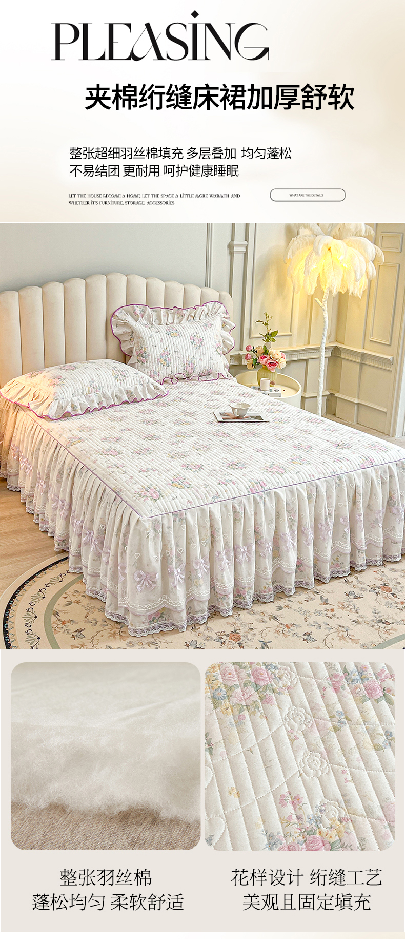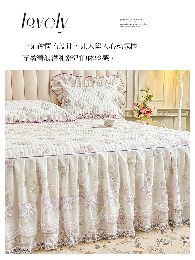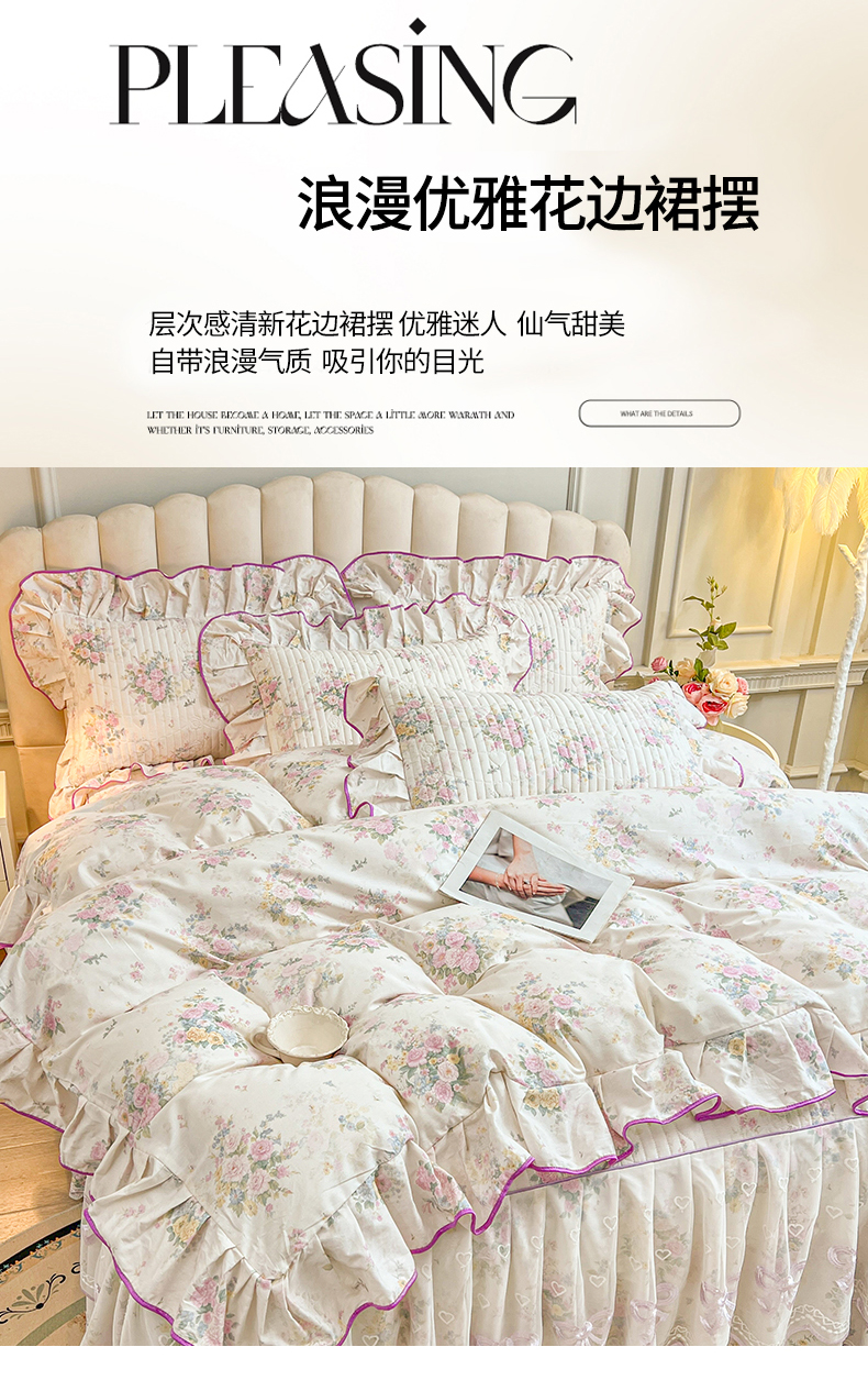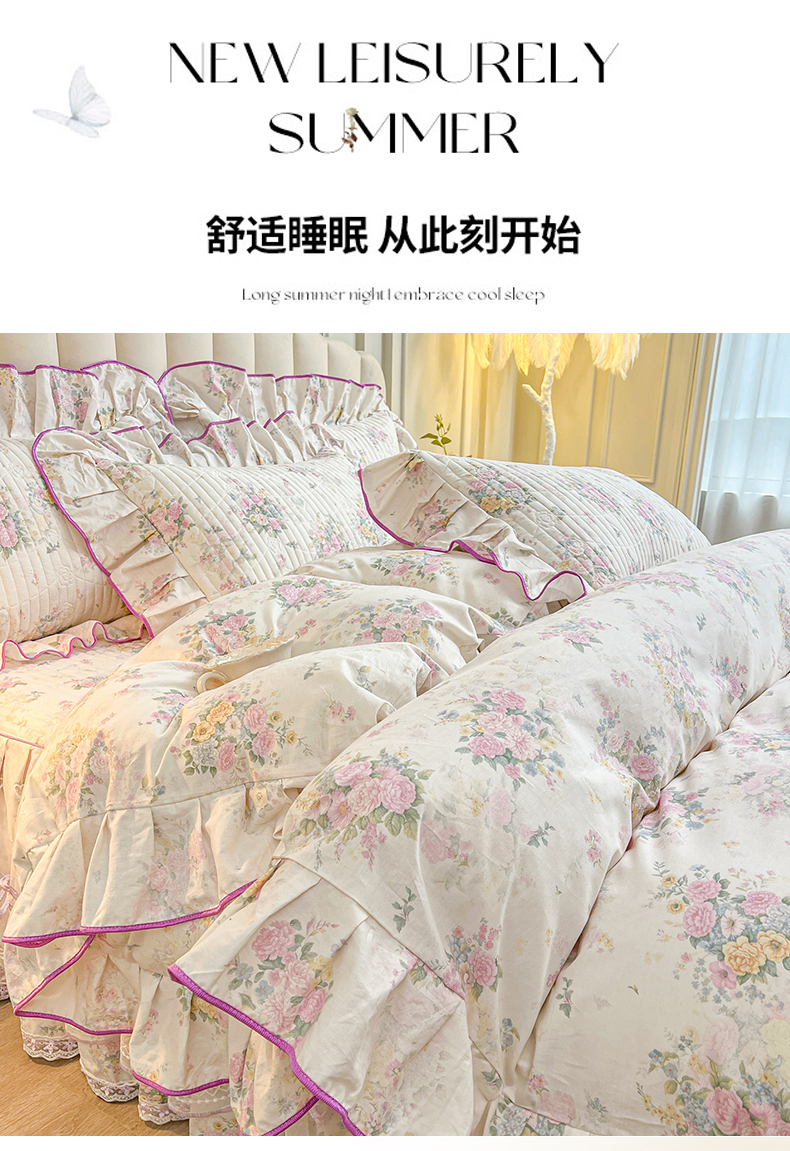 当前位置: 91家纺网 > 商品网购 > 床品套件 > 四件套 > 全棉普通四件套 > 宜凡家纺 2026新款全棉印花公主风夹棉床裙四件套 镜花映月