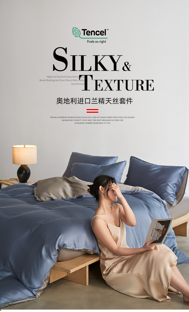 当前位置: 91家纺网 > 商品网购 > 床品套件 > 四件套 > 其它四件套 > 轩和家居 2026新款60支奥地利兰精天丝四件套 劳伦蓝+伯爵灰