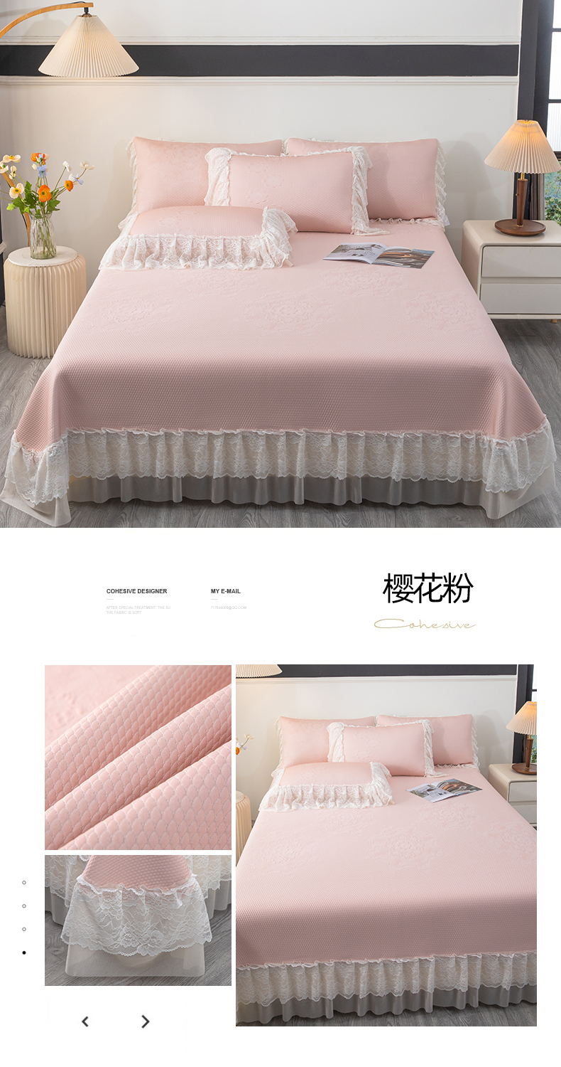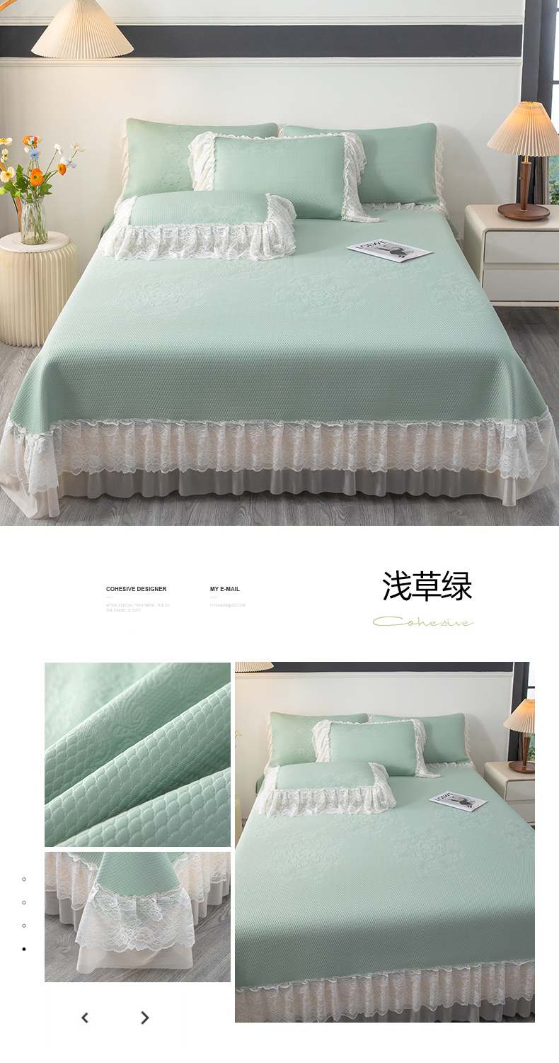 (总)木兰花 2026新款凉豆豆款PE高分子复合凉感席床盖款凉席三件套-可配同色系夏被(控价199),浅草绿,樱花粉
