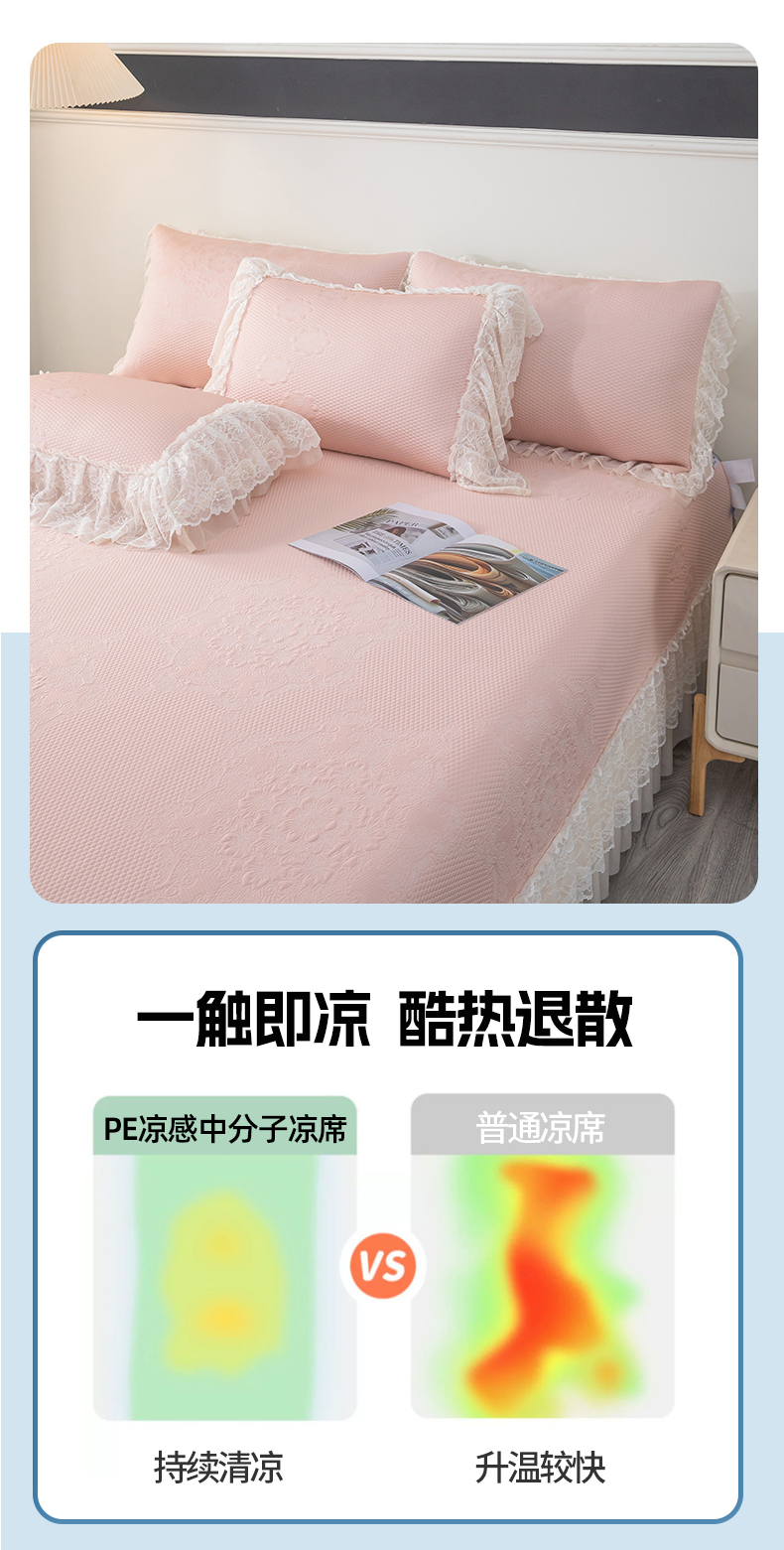 商品名称:(总)木兰花 2026新款凉豆豆款PE高分子复合凉感席床盖款凉席三件套-可配同色系夏被 (控价199)