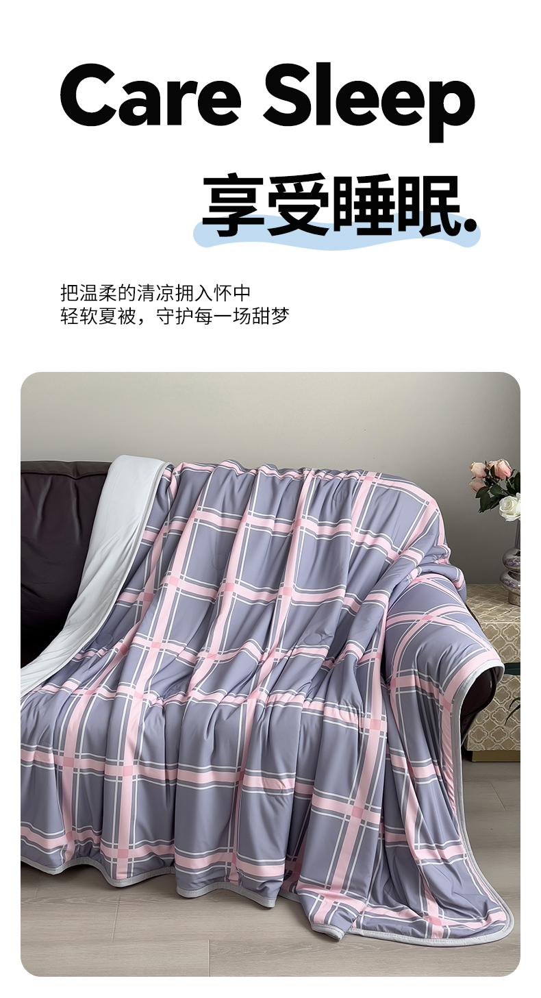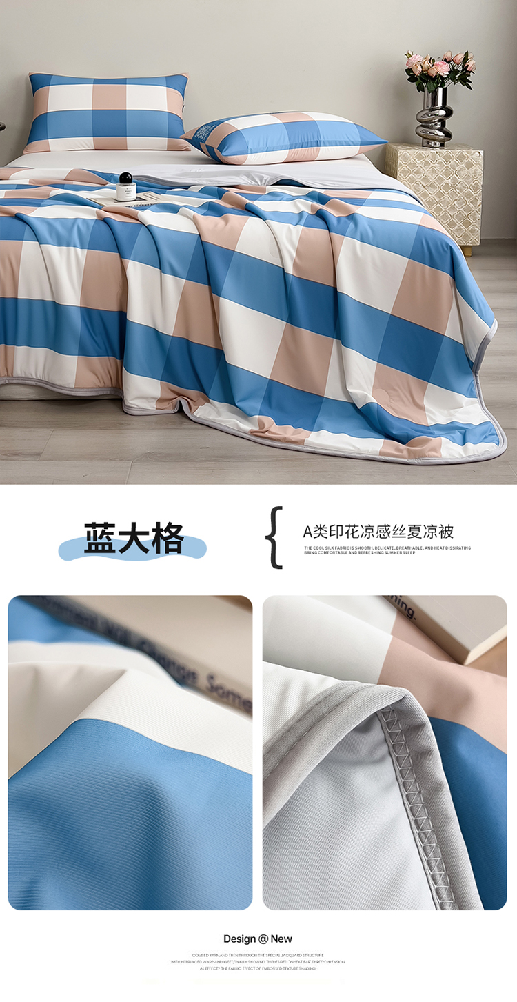 商品名称:世纪绒品 2026新款A类印花凉感丝夏被夏凉被空调被 英伦格纹