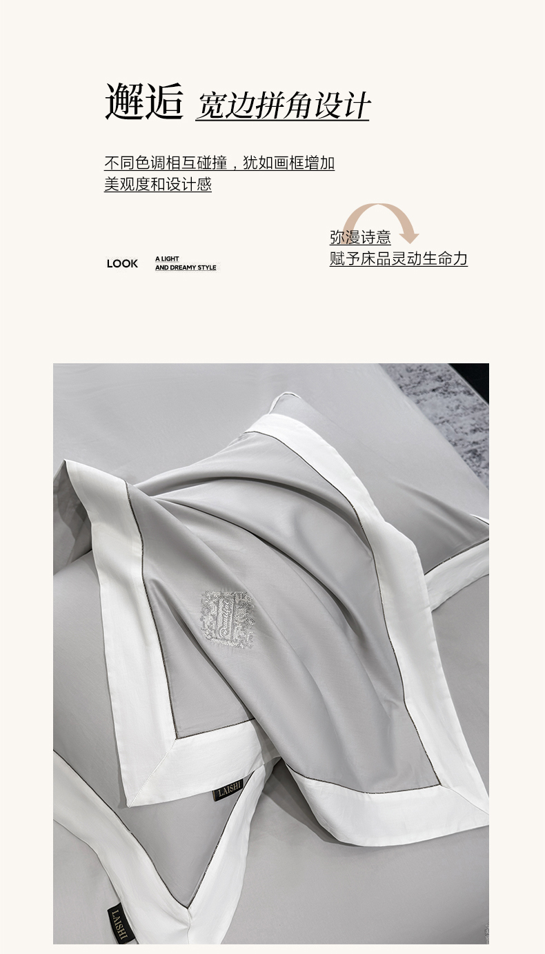 (总)莱势 2026新款100支长绒棉全棉纯棉50x50s埃及贡缎刺绣绣花四件套高端礼盒塞纳,塞纳-高级灰,塞纳-奶昔白,塞纳-轻奢粉,塞纳-天空蓝,塞纳-香芋紫