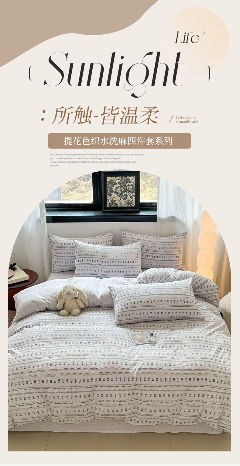 当前位置: 91家纺网 > 商品网购 > 床品套件 > 四件套 > 其它四件套 > 蓝极人 2026新款色织水洗麻印花四件套 敏敏