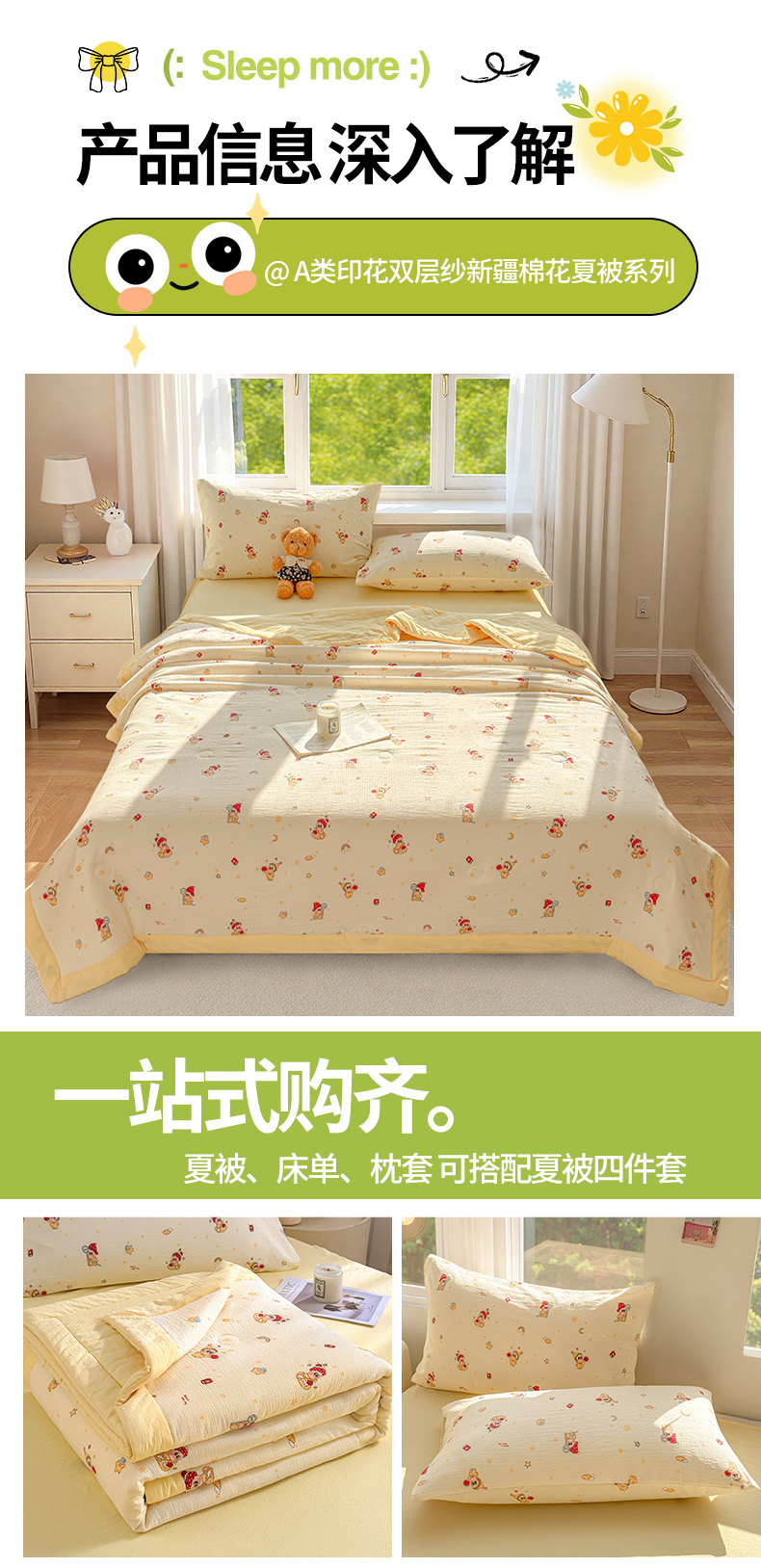 • 91家纺网 家纺一手货源 找家纺 晓时候 2026双层纱印花夏被四件套新疆棉花被可机洗夏凉被空调被夏季被子 萌萌星星人