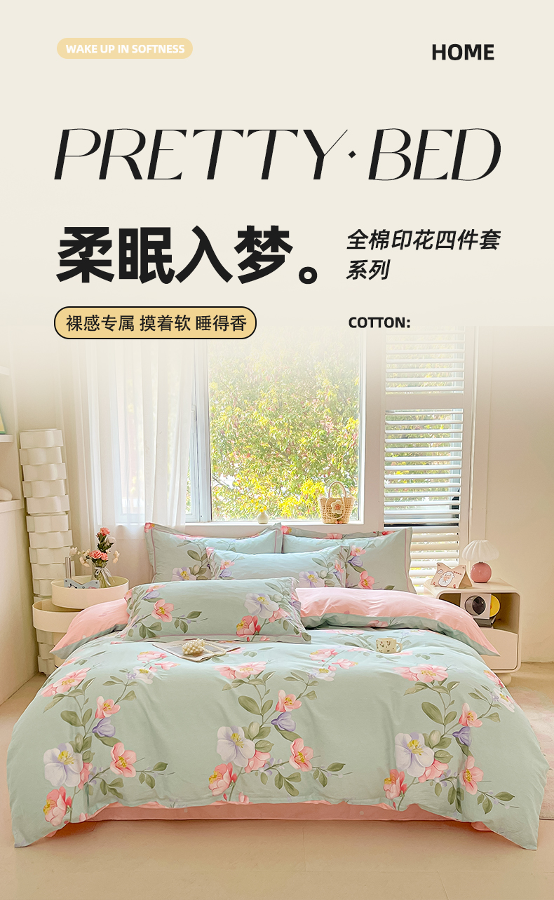 当前位置: 91家纺网 > 商品网购 > 床品套件 > 四件套 > 全棉普通四件套 > 帛美家纺 2026新款全棉纯棉印花四件套 薇薇安