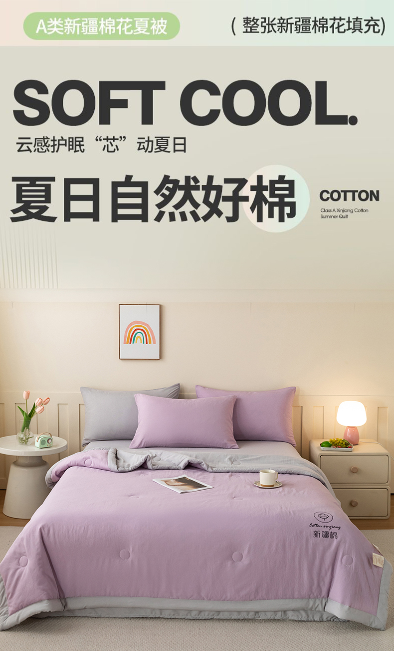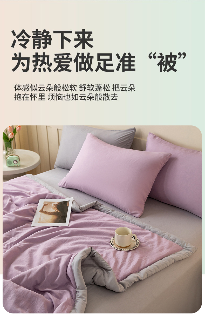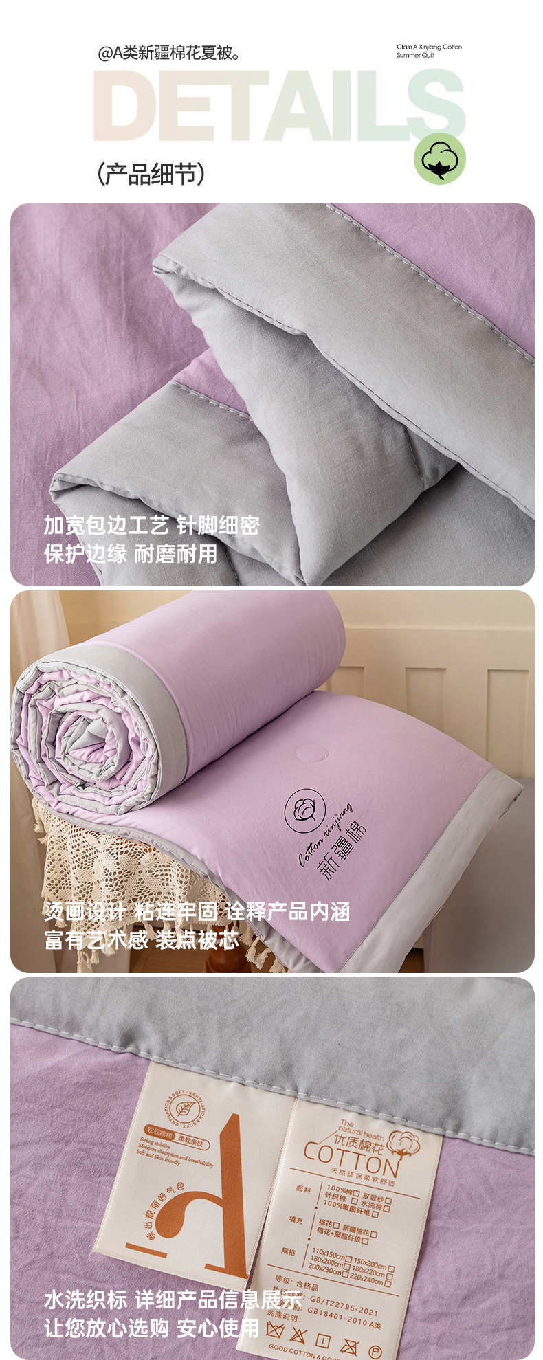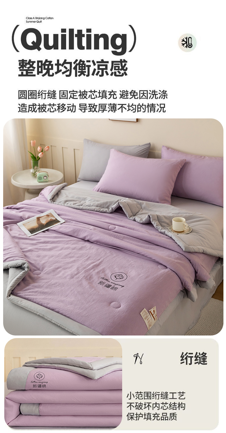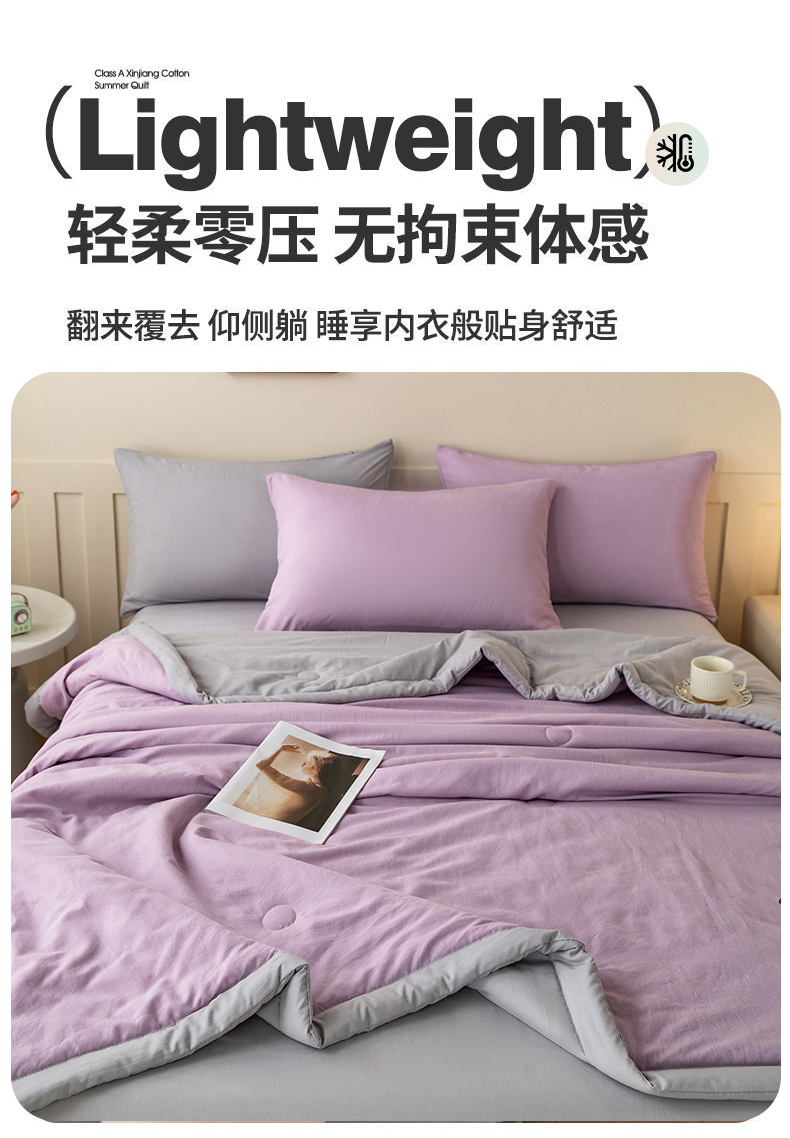 商品名称:几禾 2026春夏新款纯色水洗棉双拼夏被新疆棉花被夏凉被空调被被子被芯 双拼-紫灰