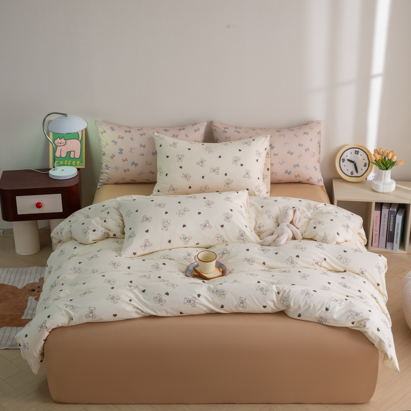 (总)梦可莱家居 2026新款全棉纯棉针织棉印花可爱卡通系列四件套,爱心曲奇,爱心熊,波点狗,蛋糕熊,动物乐园,蝴蝶卡,蝴蝶猫咪,蝴蝶兔,七彩花,云朵灰