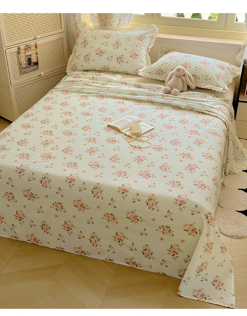 商品名称:爱彼家纺 2026春夏新款云感水洗棉床单清新碎花床单三件套 云感-春意