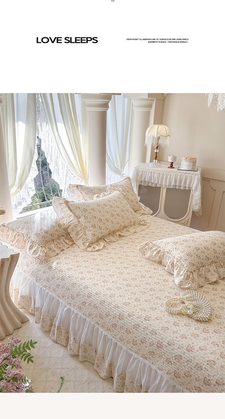 瑞宝 2026新款全棉法式田园风玻璃纱床盖三件套 淡桔