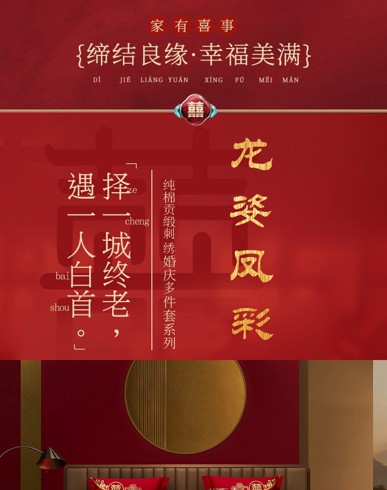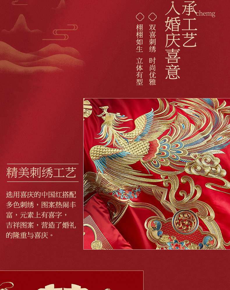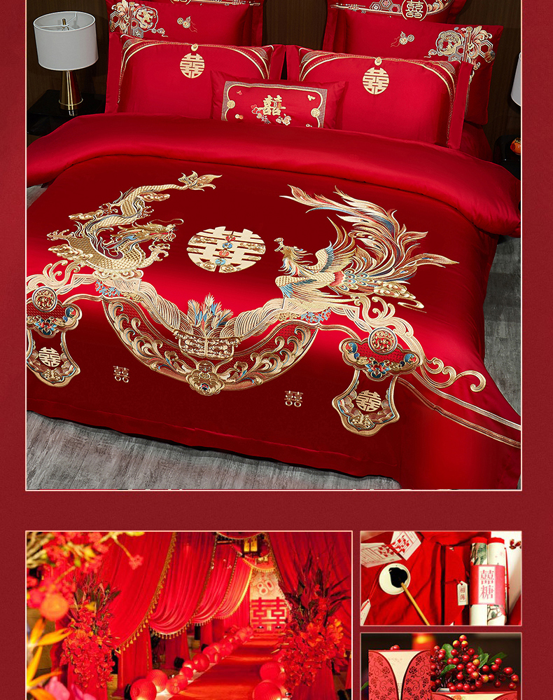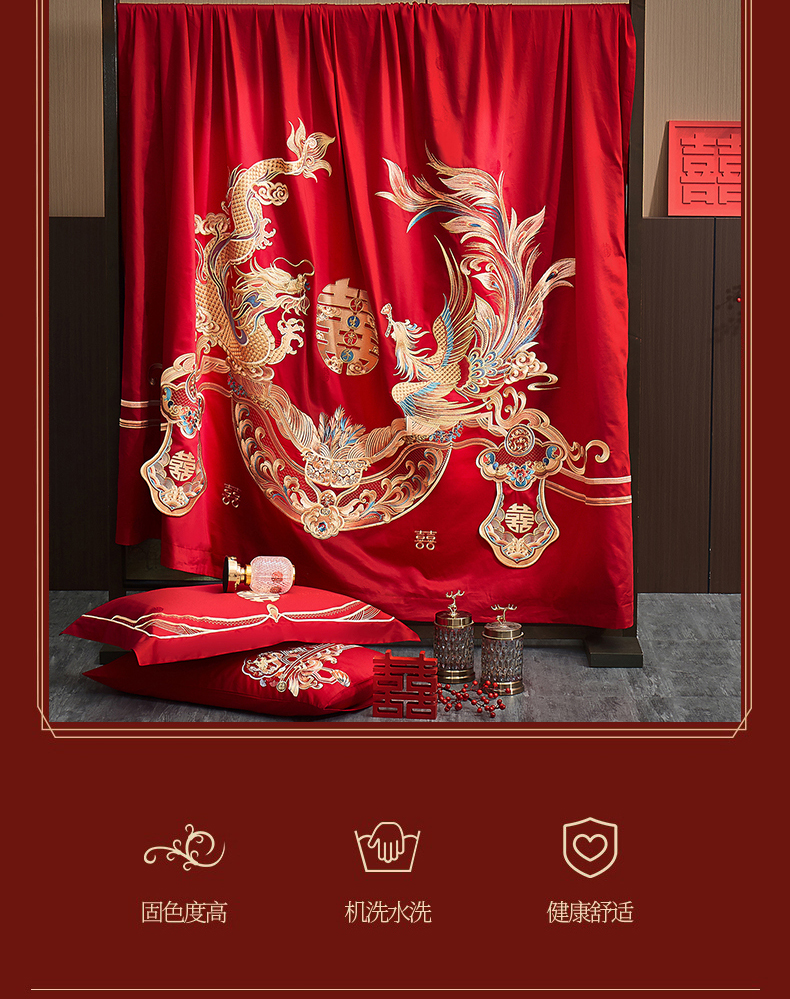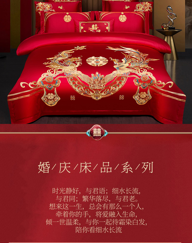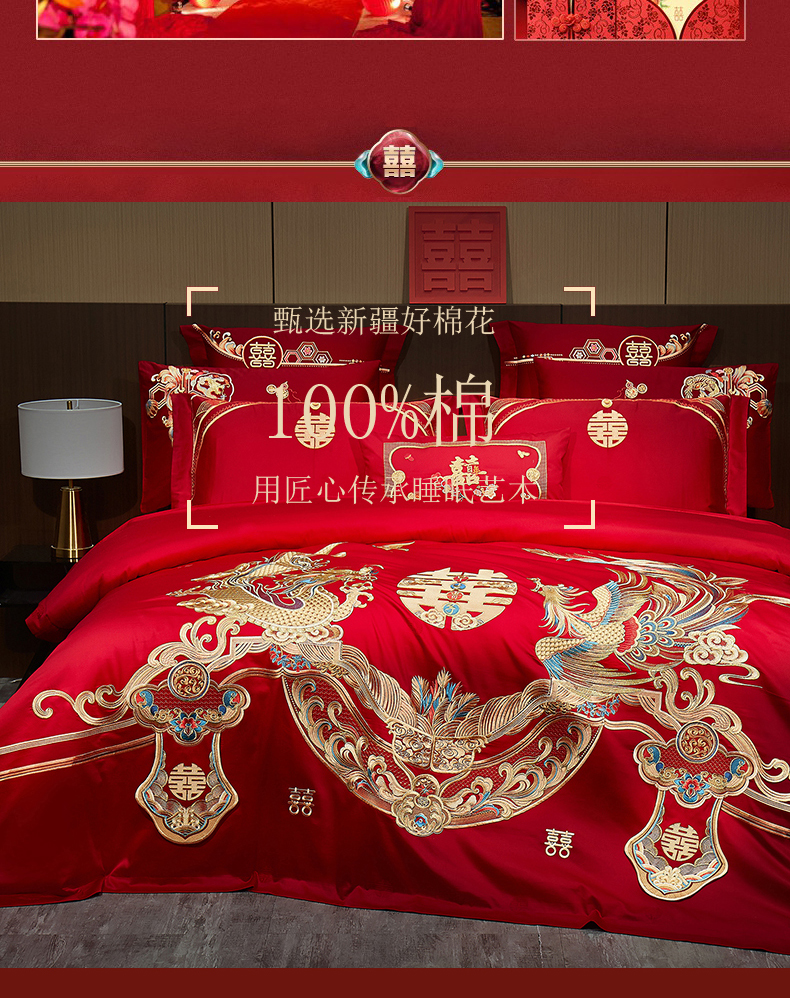 当前位置: 91家纺网 > 商品网购 > 床品套件 > 四件套 > 婚庆四件套 > 蒂爵 2026婚庆新疆长绒棉纯棉原版大绣花婚庆四件套多件套340系列 龙姿凤彩