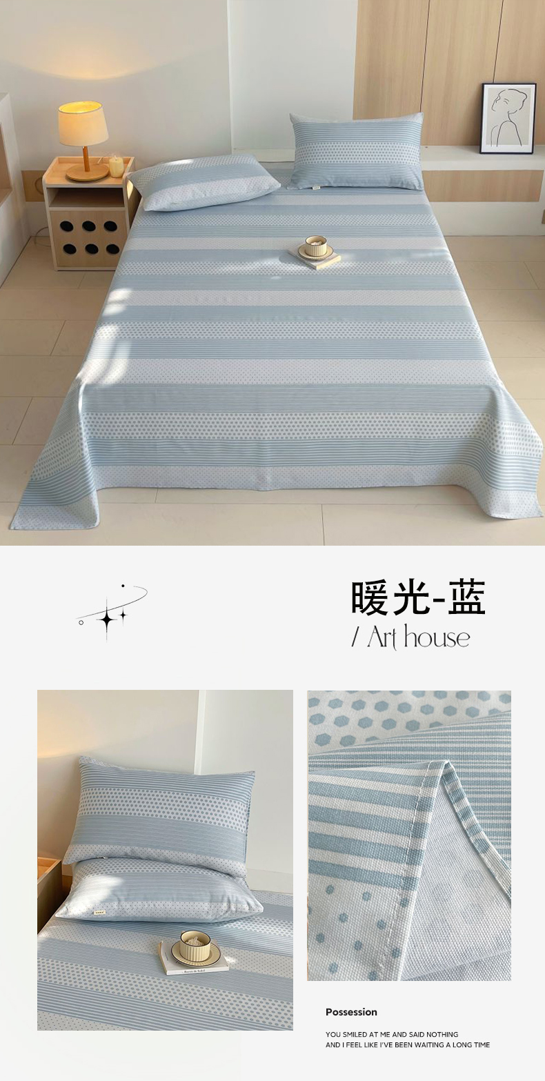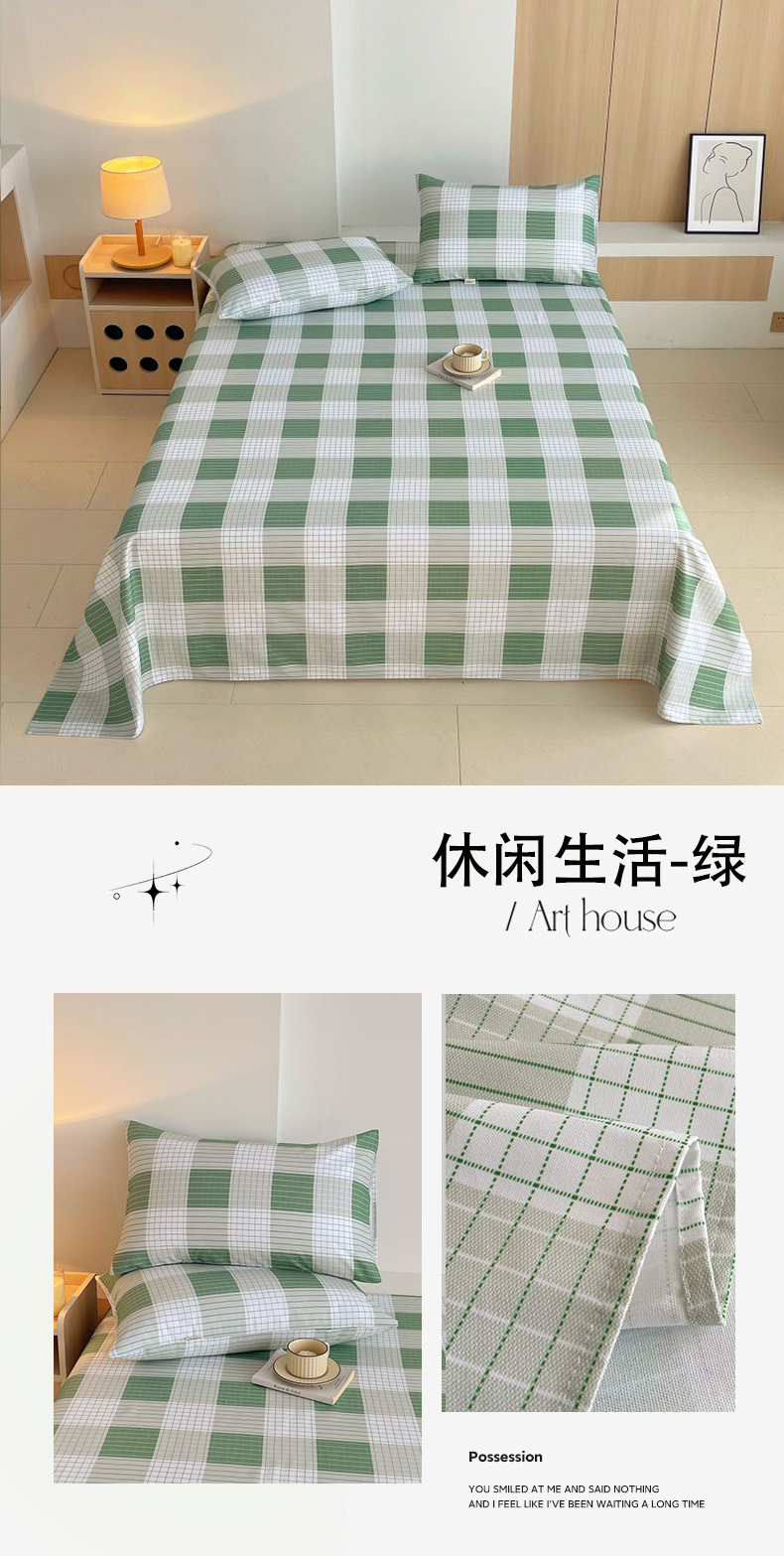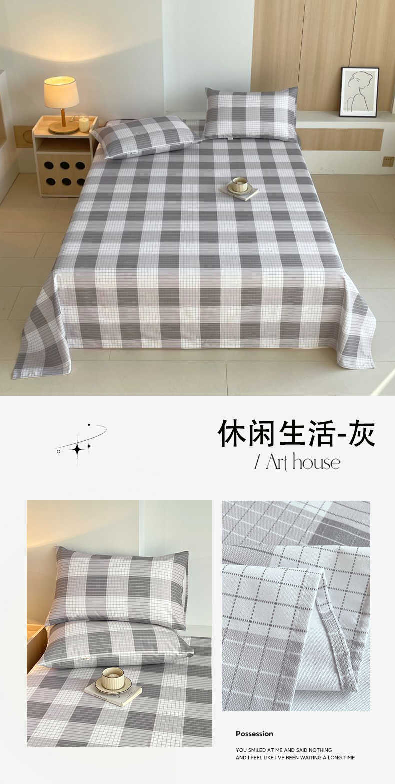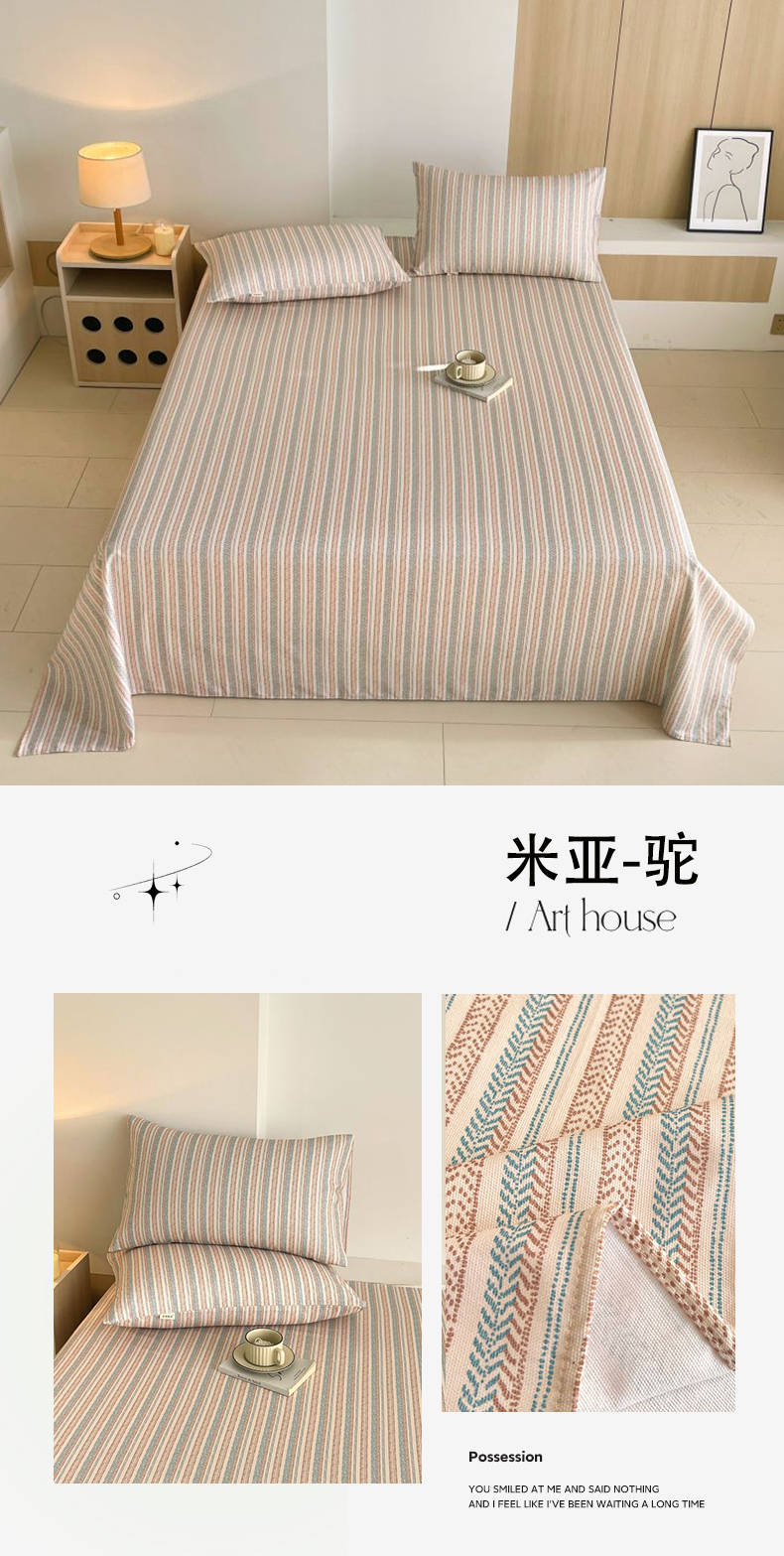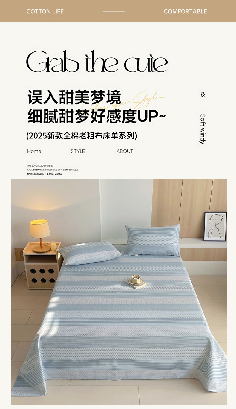 (总)欧妮家纺 2025新款老粗布床单全棉纯棉夏季空调凉席枕套三件套-条格系列