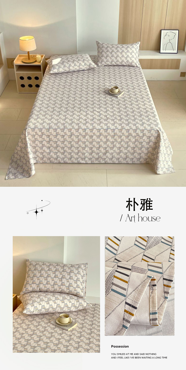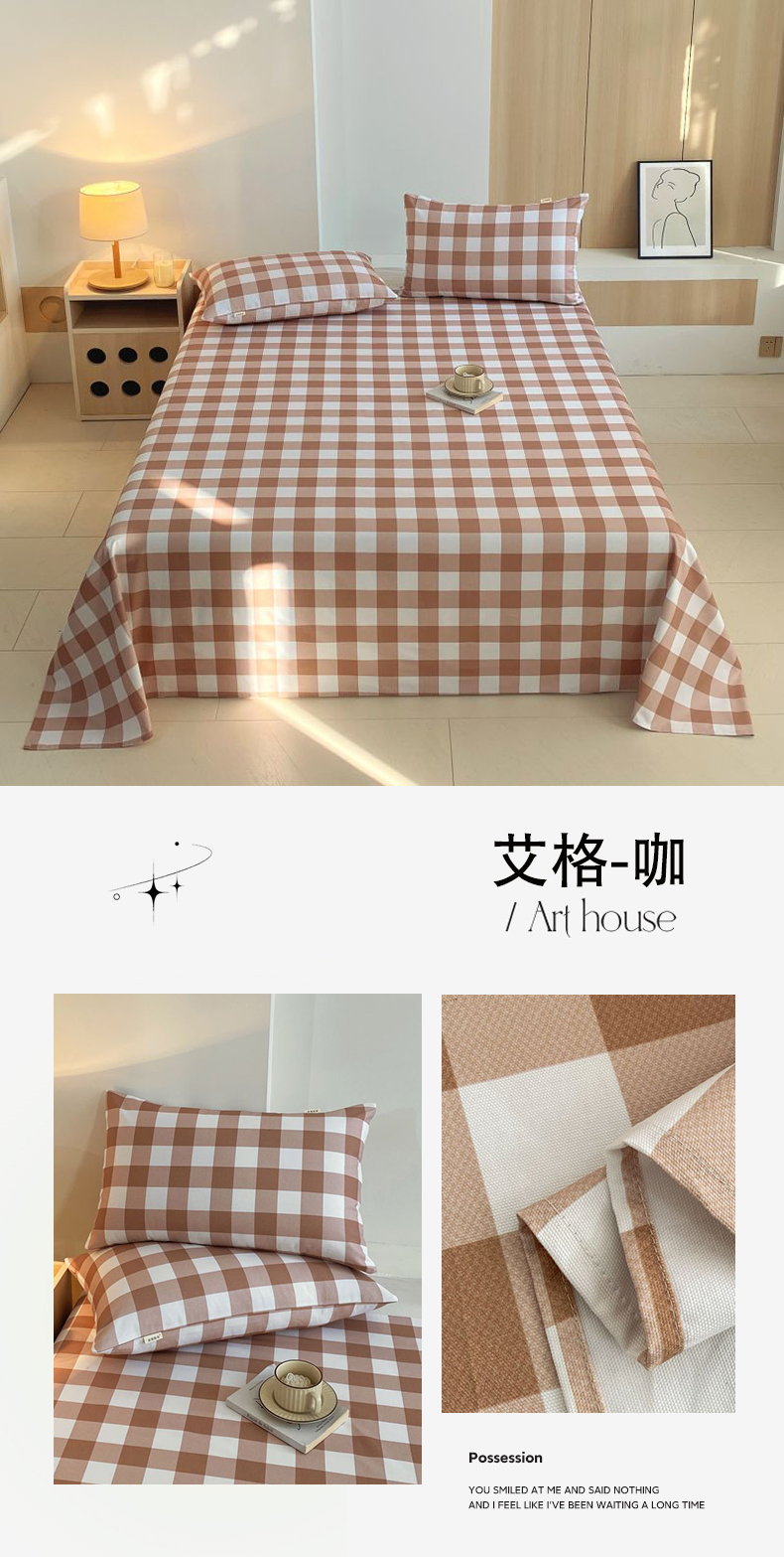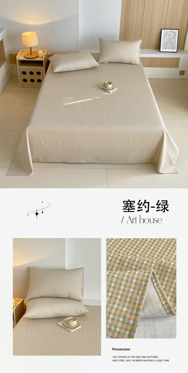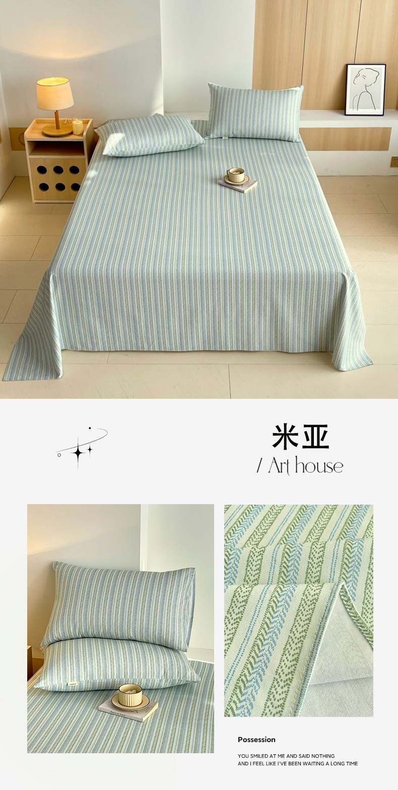 (总)欧妮家纺 2025新款老粗布床单全棉纯棉夏季空调凉席枕套三件套-条格系列