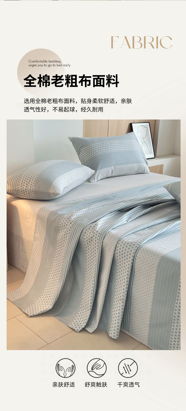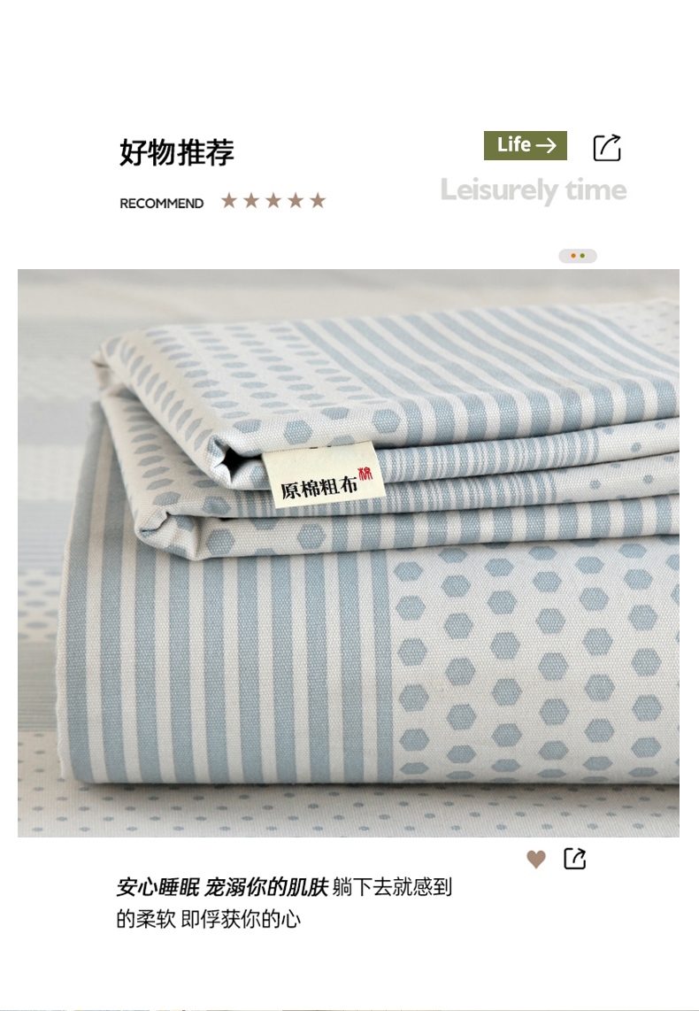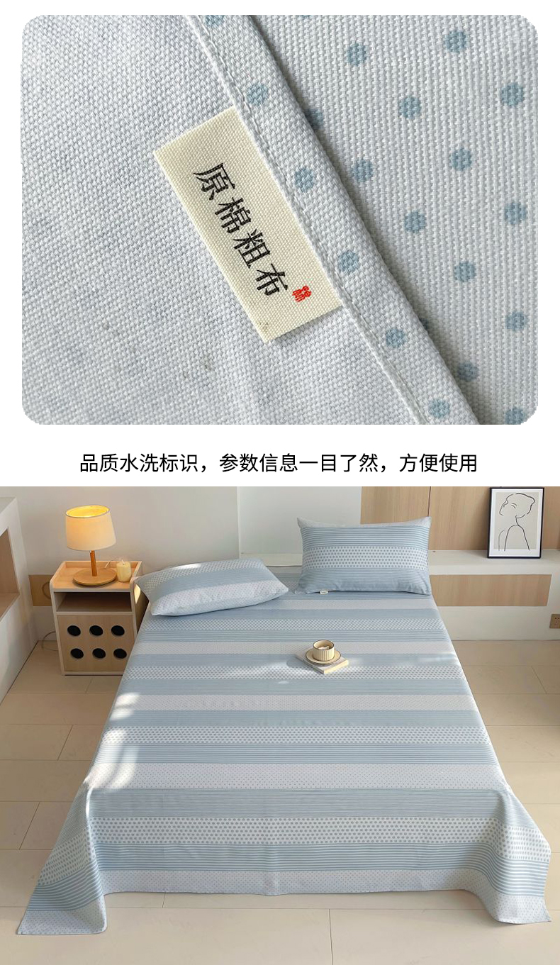 商品名称:(总)欧妮家纺 2025新款老粗布床单全棉纯棉夏季空调凉席枕套三件套-条格系列