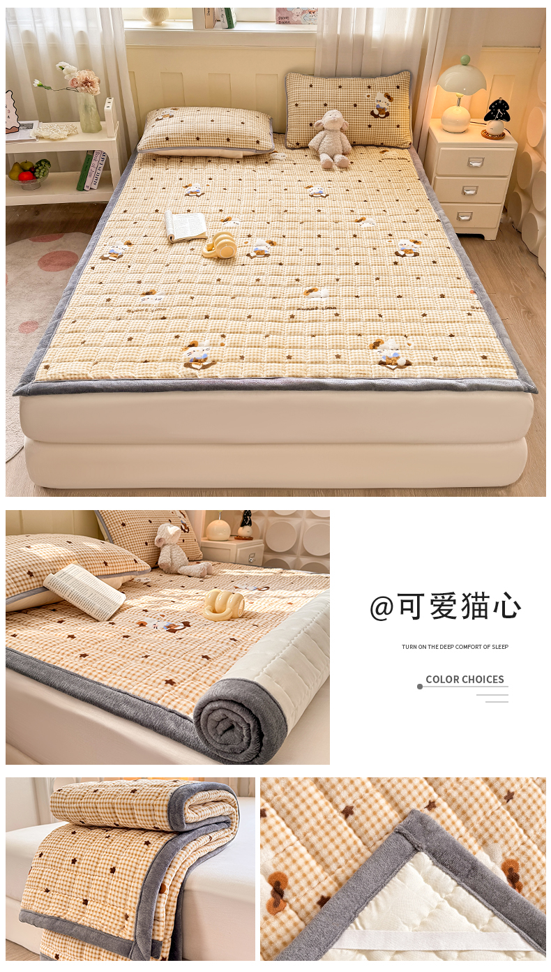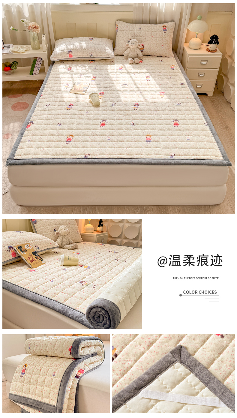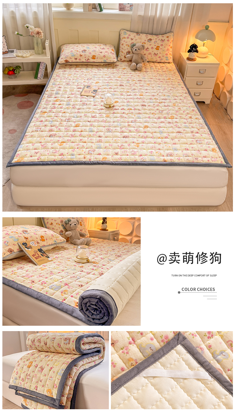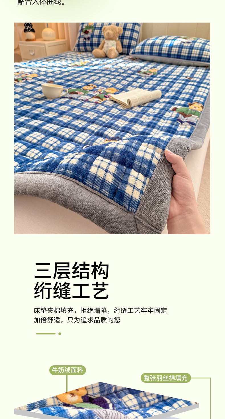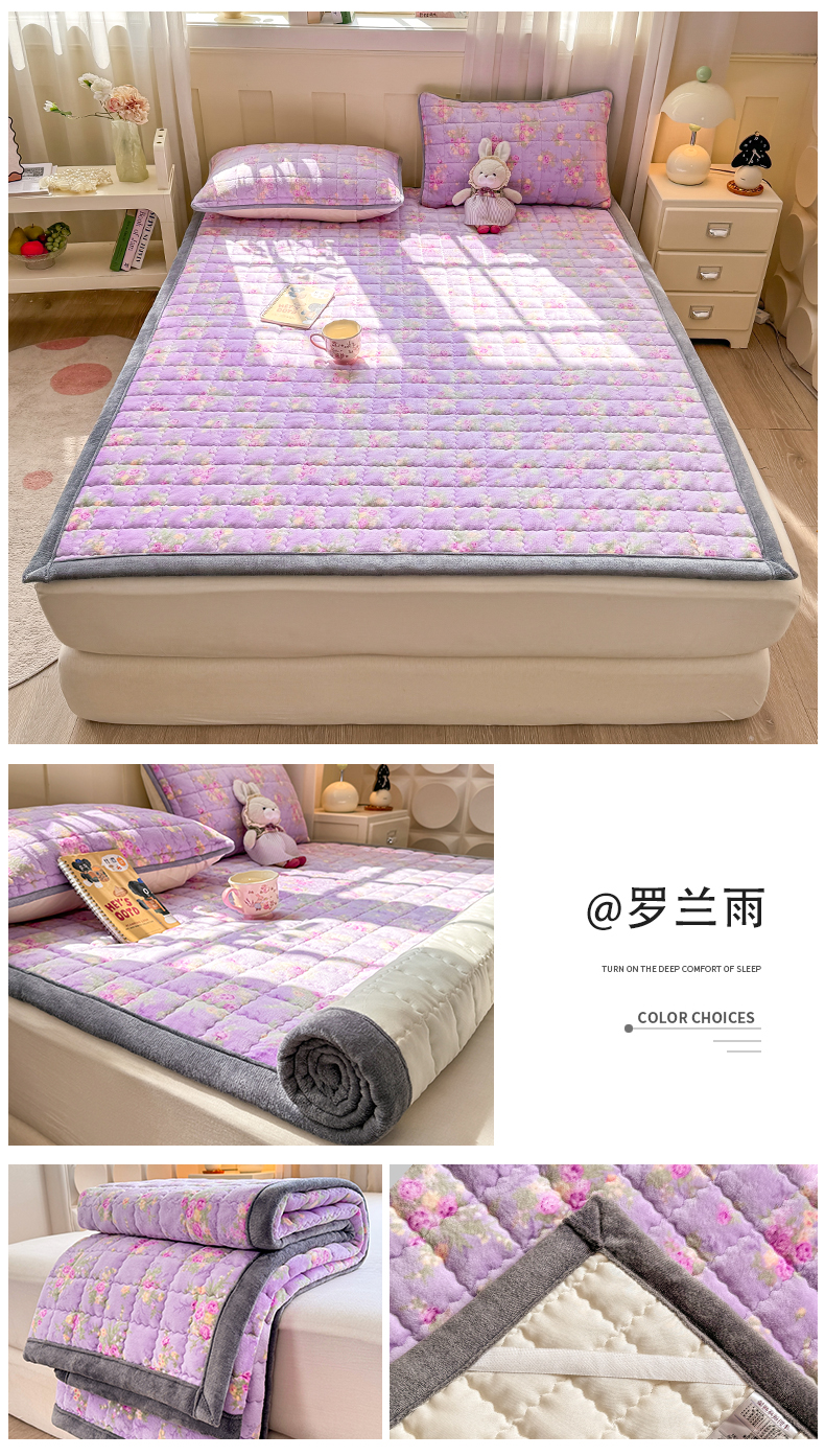 (总)欧妮家纺 2025新款水晶边牛奶绒印花床垫床褥子软垫(提供买家秀)大床图