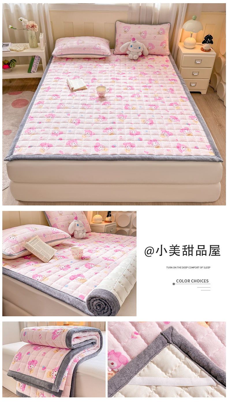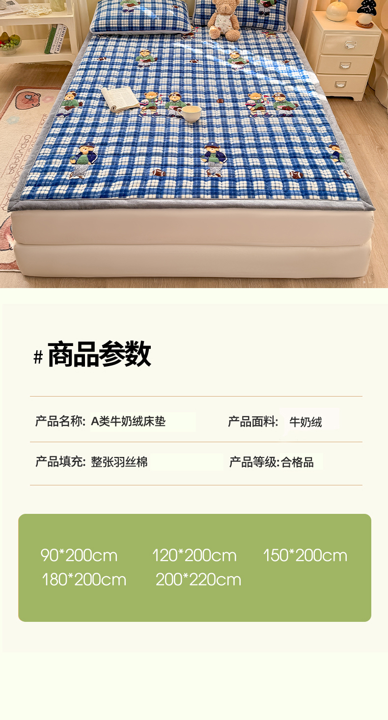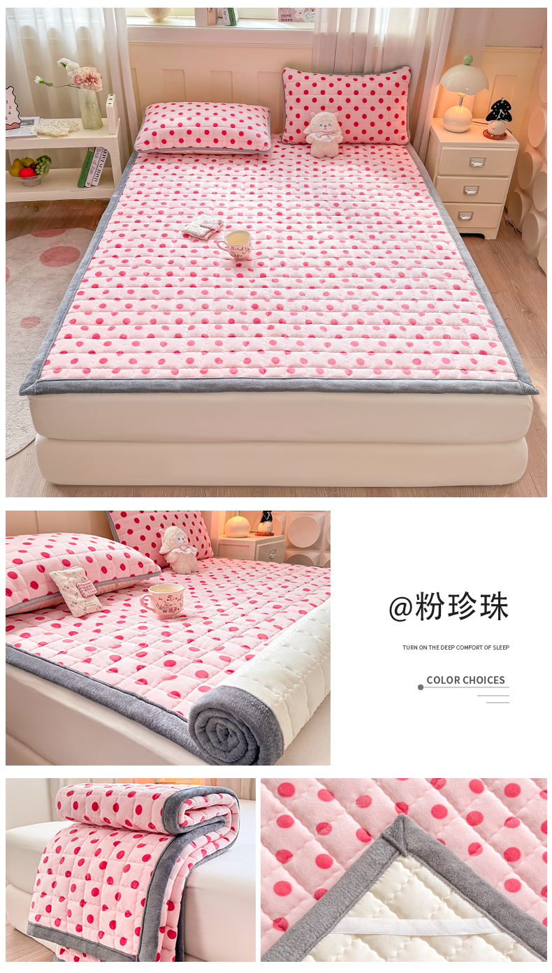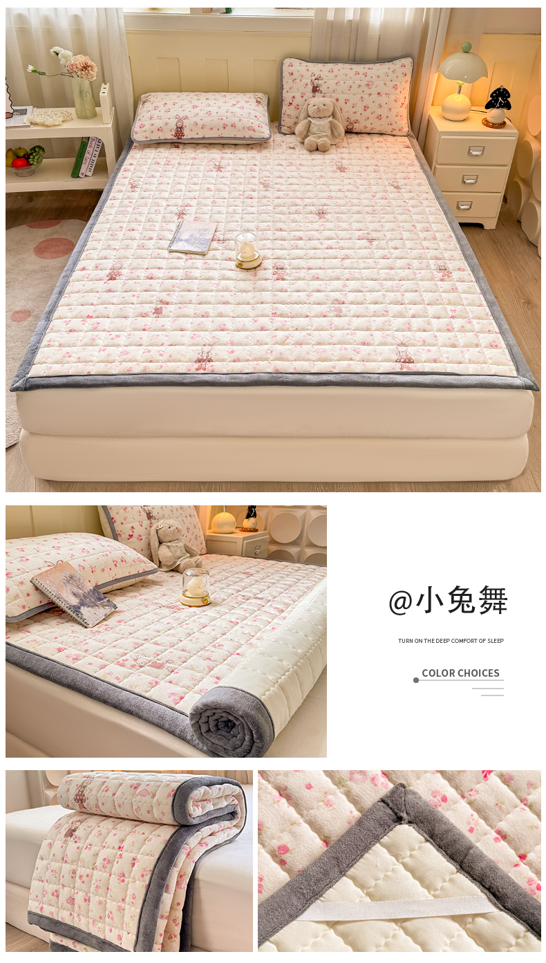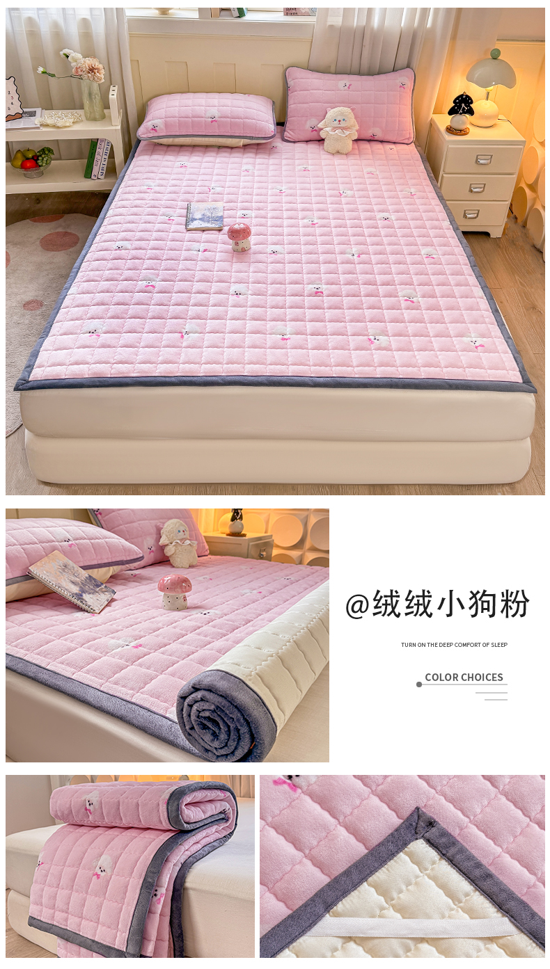 (总)欧妮家纺 2025新款水晶边牛奶绒印花床垫床褥子软垫(提供买家秀)大床图