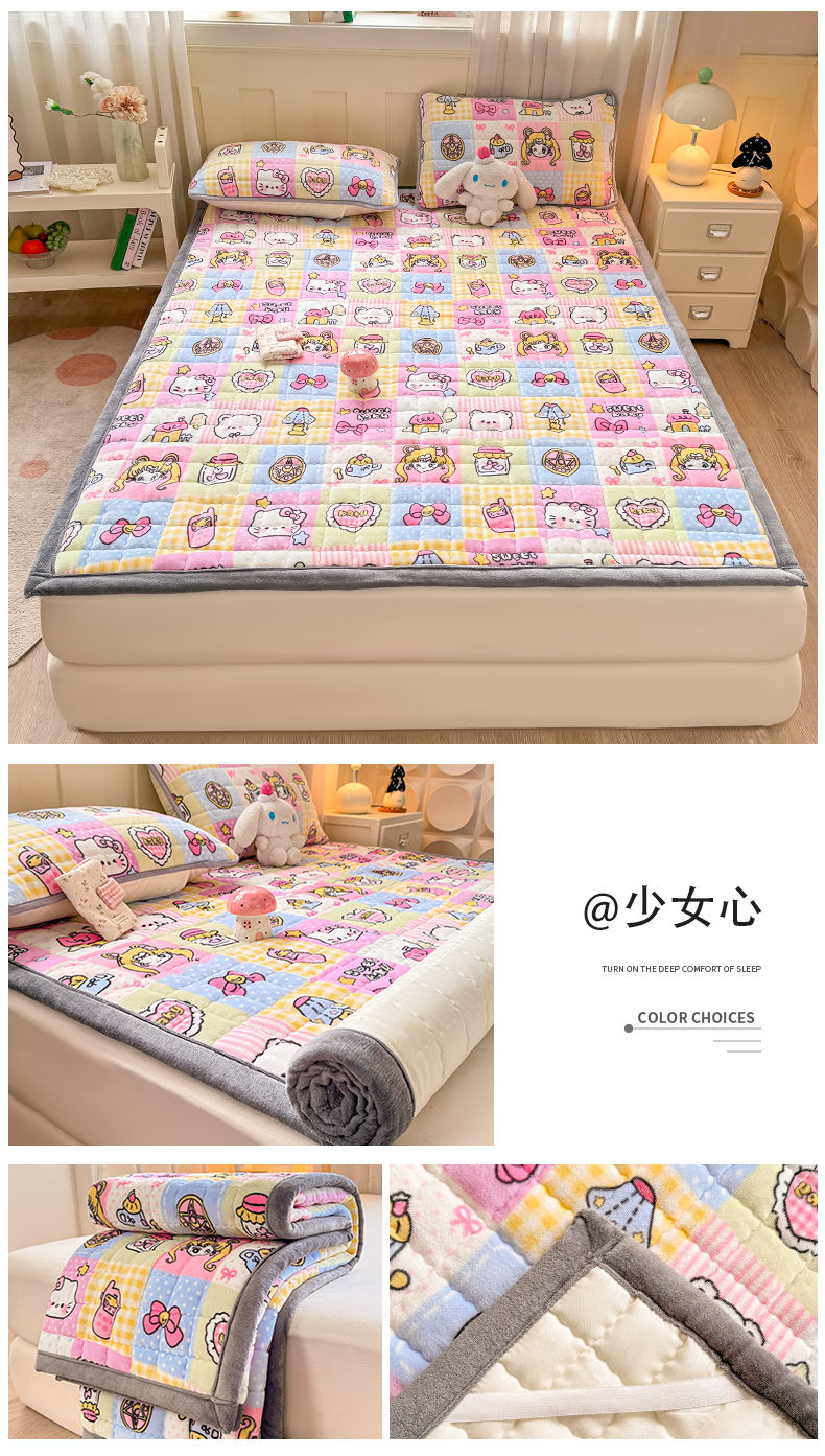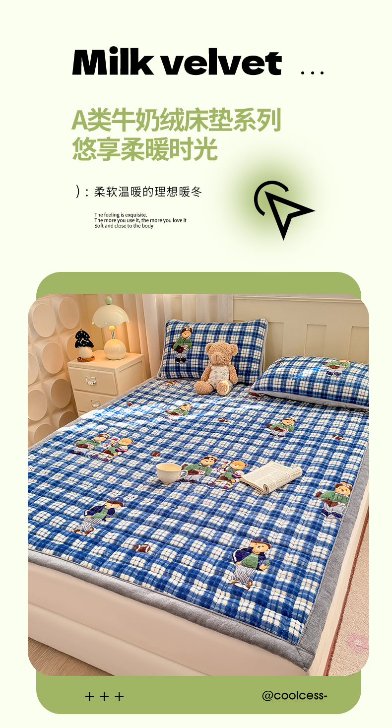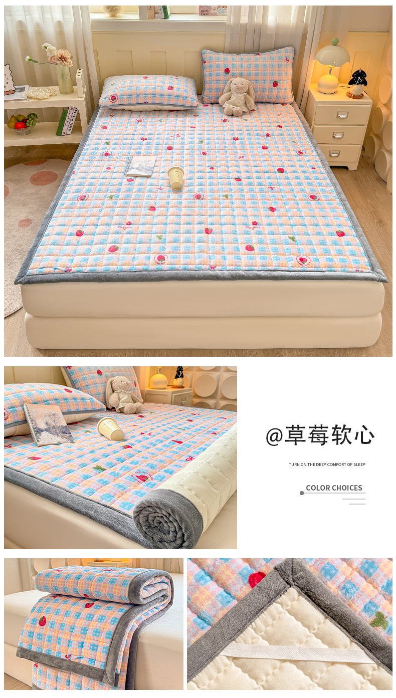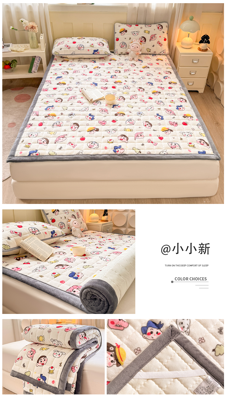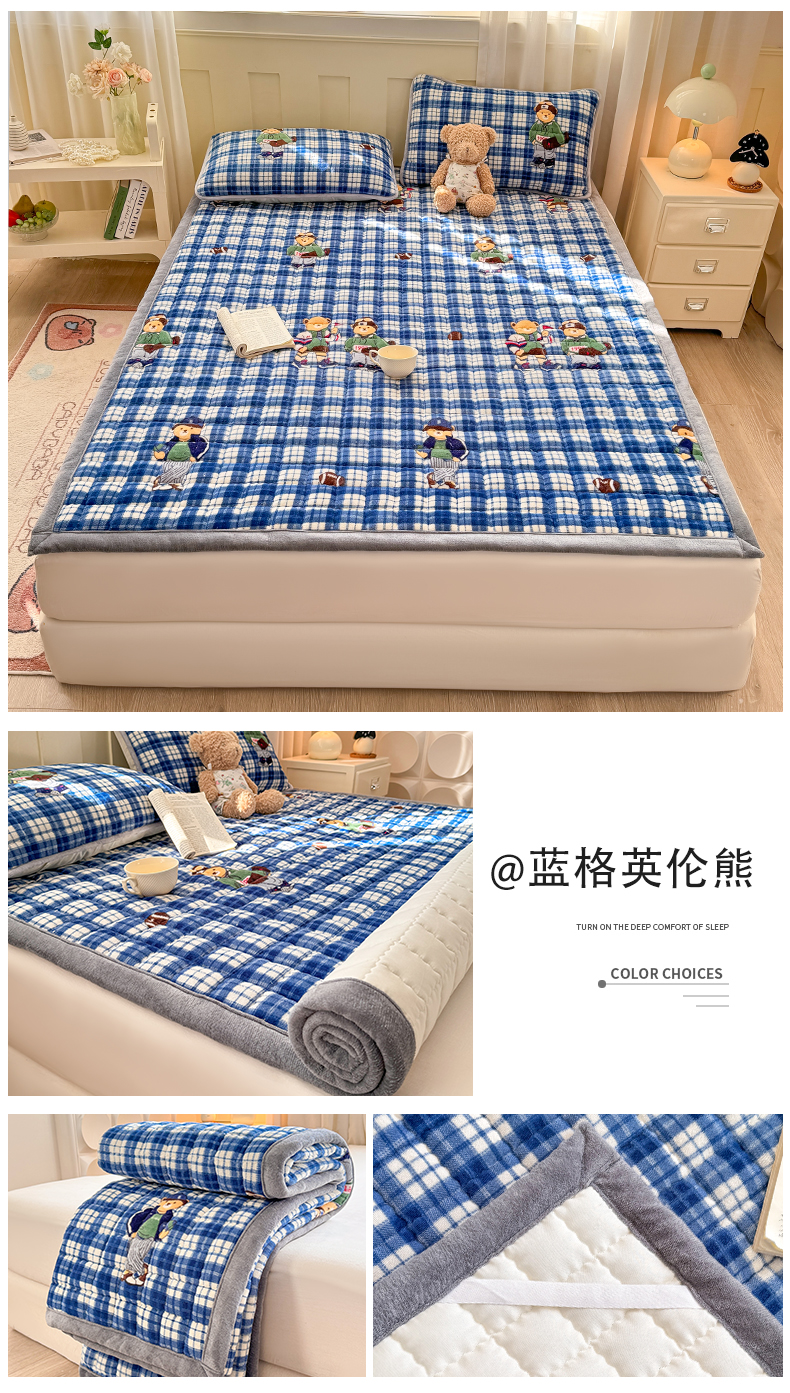 (总)欧妮家纺 2025新款水晶边牛奶绒印花床垫床褥子软垫(提供买家秀)大床图
