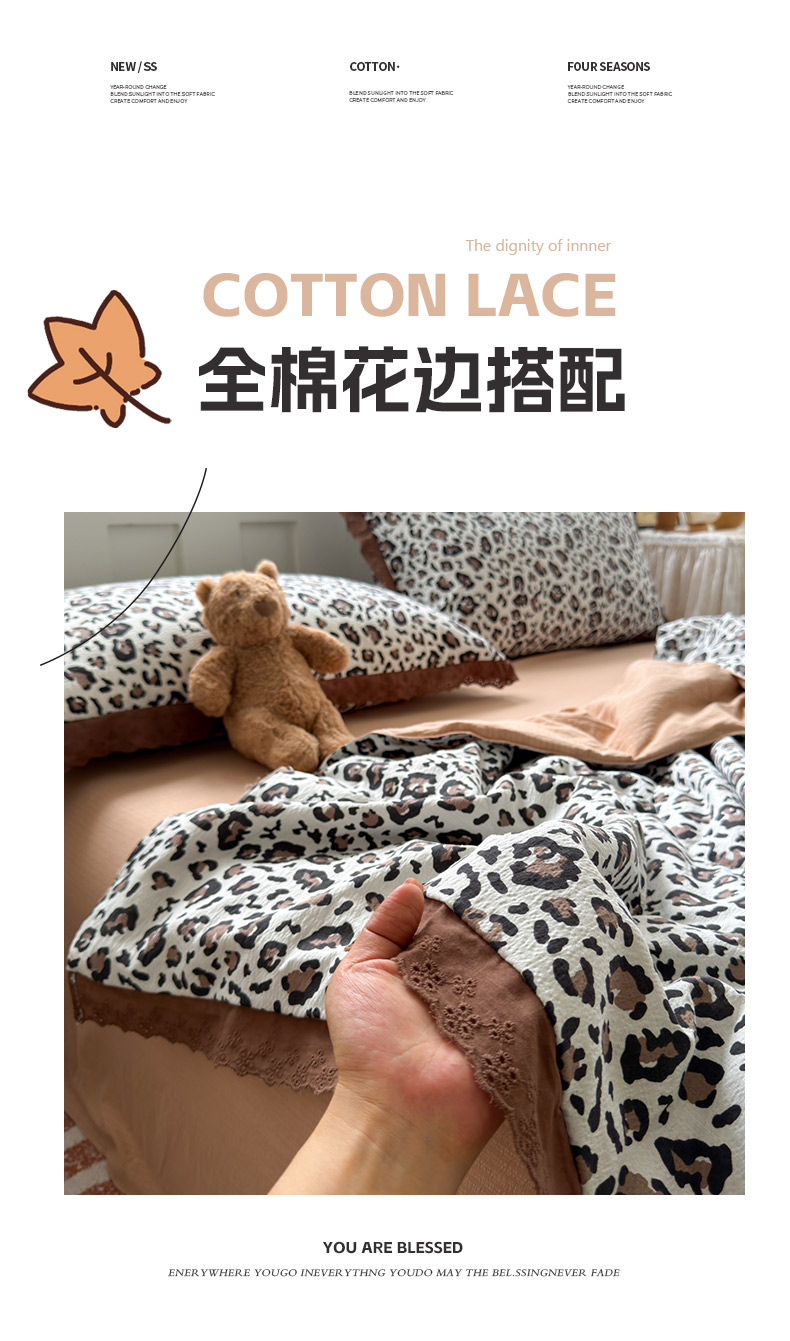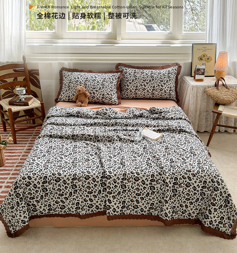 • 91家纺网 家纺一手货源 找家纺 花伞家居 2026新款全棉花边皱皱双层纱夏被夏凉被空调被四件套 夏被-豹纹蝴蝶
