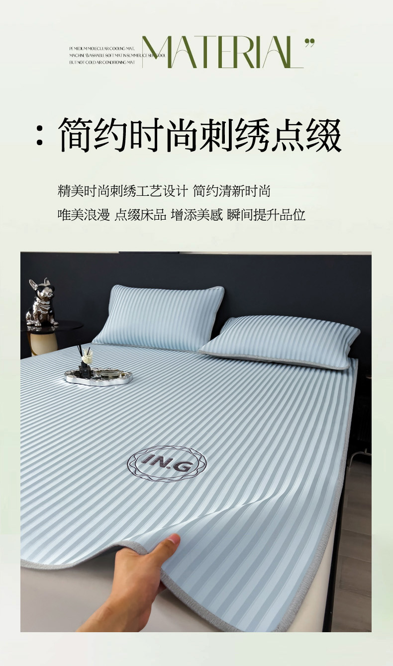 商品名称:(总)印季家纺 2026新款刺绣冰感条纹全锦凉席席子三件套